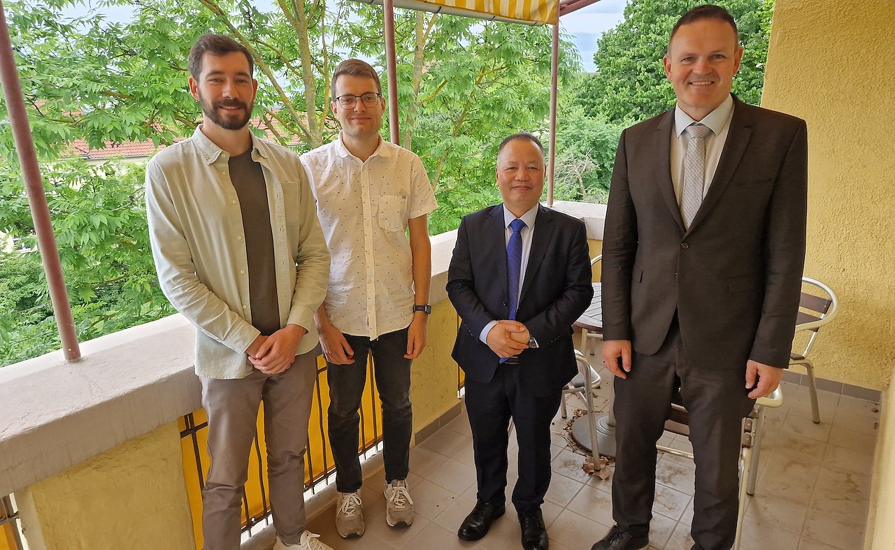 v.r.n.l.: Hochschulpräsident Prof. Dr. Jörg Wagner, Prof. Dr.-Ing. Phan Quang Van (Erster Sekretär der Bildungsabteilung der Botschaft der Sozialistischen Republik Vietnam), Daniel Harder (International Office) und Robert Külper (Studienkolleg) (Foto: Hochschule Nordhausen)