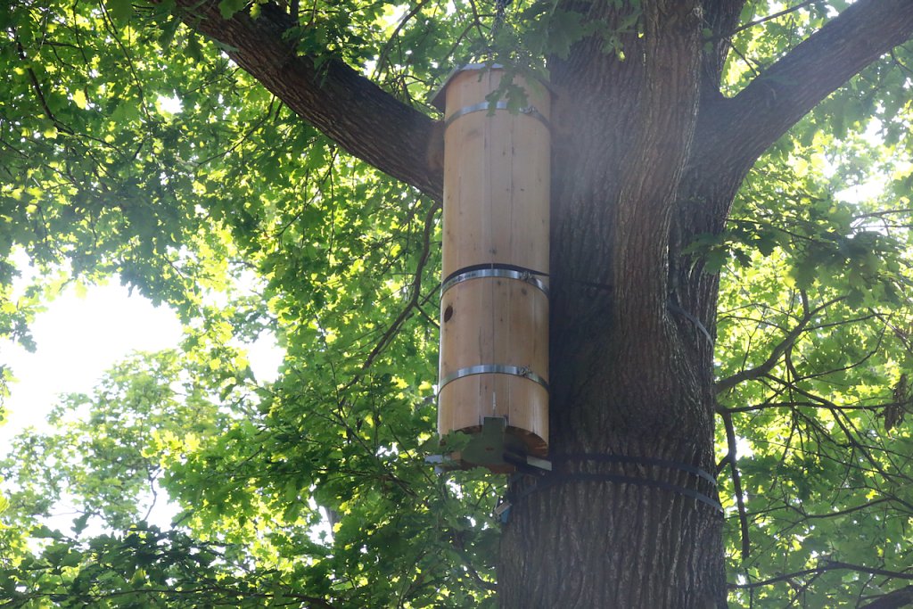 Auf den Erfolg darf man mächtig Stolz sein, aber man musste sich auch ordentlich ins Zeug legen. Aus den ganzen Aktivitäten rund um den Schulgarten hat die Klasse einen kleinen Foto-Comic gebaut und dabei gezeigt, wie man aus ein paar kräftigen Ästen, Muscheln und Schneckenhäusern Insektentränken bauen kann. Die sehen im Garten nicht nur schick aus, das Bienenvolk, das sich seit ein paar Wochen hoch oben über den Köpfern der Schüler in einer eigens für sie aufgehängten "Baumhöhle" eingenistet hat, freut die bequeme Wassertankstelle bestimmt auch.