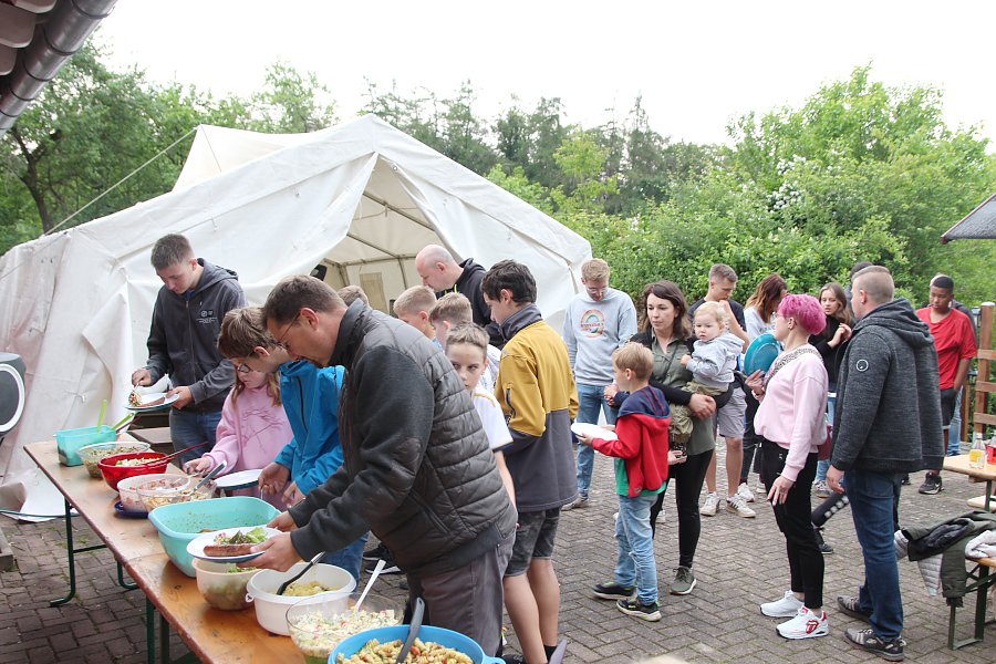 Entgegen schlechter Wetterbedienungen schlugen am vorletzten Mittwoch 20 Kinder und Jugendliche ihre Zelte auf dem Gelände der Feuerwehrbleibe auf. Die Alte Burg” war auch dieses Jahr wieder Schauplatz des Zeltlagers der Jugendfeuerwehr Heiligenstadt. Gemeinsam mit neun Betreuern und zahlreichen Helfern verbrachten sie dort gemeinsam das Fronleichnamswochenende. Bereits ab dem ersten Abend wurde für alle im Küchenzelt gekocht.