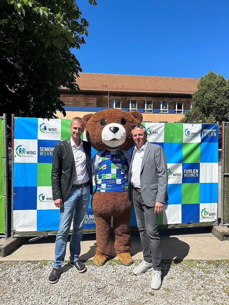 Natürlich kam auch der WBG-Bär, das WBG-Maskottchen, zu einem Besuch bei den Kindern vor Ort vorbei. Der WBG-Pavillon mit Sonnenstühlen war, nicht zuletzt wegen der vielen kleinen Mitbringsel, sehr gefragt. Es blieb immer wieder Zeit für einen kleinen Plausch und nachbarschaftliches Miteinander.