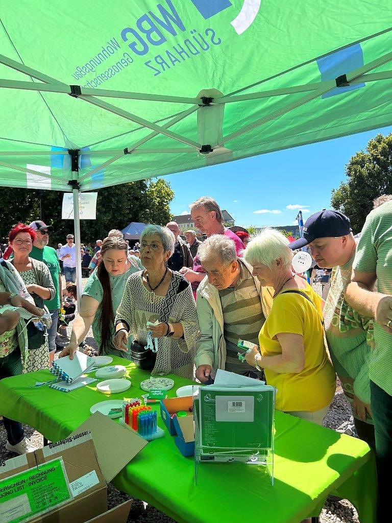 Knapp 5.500 der rund 7.000 WBG-Mitglieder wohnen in Nordhausen. Das WBG-Team vor Ort mit den für die Nordhäuser Wohngebiete verantwortlichen WBG-Objektmanagerinnen und Objektmanagern war bei schönstem Wetter von der Resonanz begeistert.