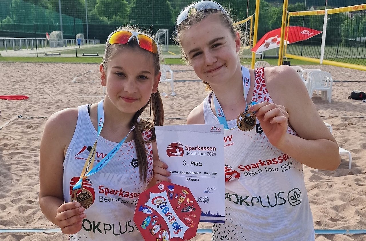 Gegen Mädels aus Schmalkalden, Meiningen, Gotha und Eisfeld holten sie zum ersten Mal in der Altersklasse für Nordhausen eine Medaille im Beachvolleyball. Sie mussten sich nur im Halbfinale den späteren Goldmedaillengewinnerinnen aus Gotha geschlagen geben. Besonders beeindruckend ist dabei, dass sich die beiden gegen die meist zwei Jahre älteren Konkurrentinnen durchsetzen konnten. Durch eine sehr gute Technik, eine ausgewogene Teamleistung und eine hervorragende Kondition, welche sie sich während der Hallensaison beim SVC erarbeitet haben, konnten Ida und Magdalena selbst bei den hohen Temperaturen am Samstag den anderen Mädels teils deutliche Siege abringen.