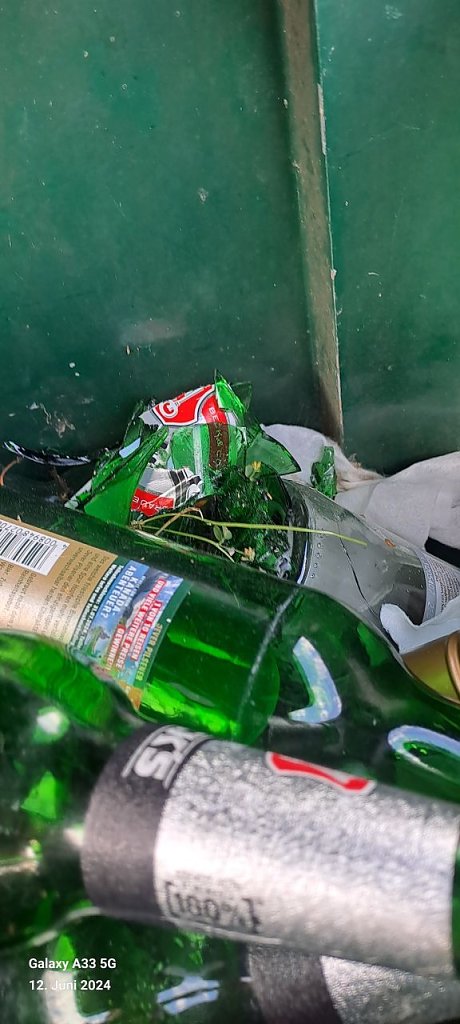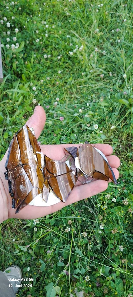 Meine Frau und ich haben heute eine halbe Stunde zugebracht, um in dem hohen Gras zerbrochene Flaschen und anderen Müll aufzusammeln, damit sich die Kinder beim Spielen nicht verletzen, fährt der mann fort und schickte uns als Beweis die angehängten Fotos mit.