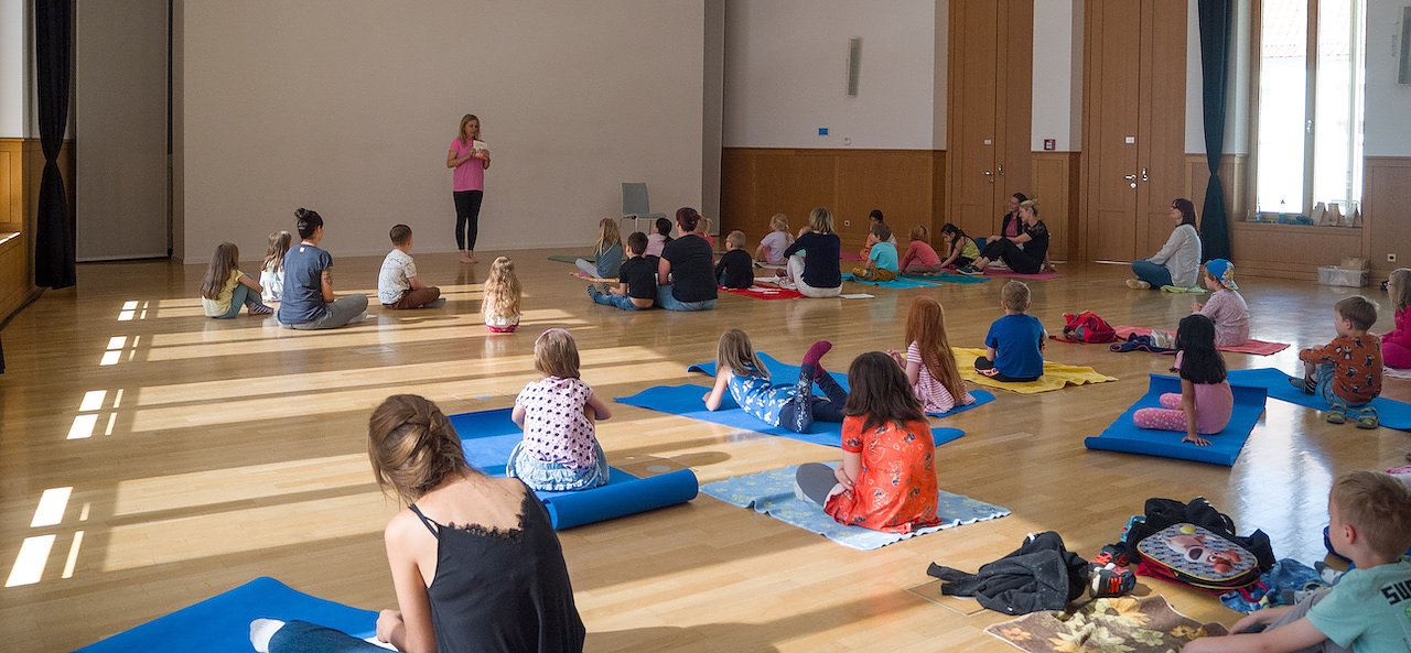 Vier Stempel konnte jedes Kind auf seiner Leseäffchen-Karte sammeln. Zum Abschluss gab es nun ein großes Fest für alle mit Autorin und Kika-Moderatorin Tanja Mairhofer. Gemeinsam mit ihr gingen die Kinder auf lustige Weltreise und entdeckten gemeinsam die Welt des Yoga.