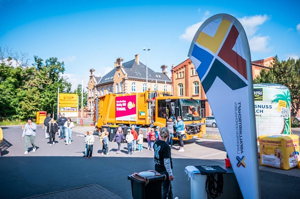 Wir waren an fünf Supermärkten im Landkreis unterwegs und sind mit vielen Leuten zum Thema Abfalltrennung und Abfallvermeidung ins Gespräch gekommen. Viele trennen ihre Abfälle, aber wir konnten auch immer wieder Mythen aufklären und gute Tipps zur noch besseren Mülltrennung geben. Geholfen hat uns dabei ein wiederverwendbarer Stoffbeutel und ein Gemüsenetz, damit zum Beispiel auf die Folientüten, die es leider immer noch in Supermärkten gibt, verzichtet werden kann. Ein Abfallsammelfahrzeug der Südharzwerke hat uns die ganze Woche begleitet und wer wollte, konnte dieses besichtigen und sich ebenso mit den Herausforderungen der Müllwerker bei der Abfuhr vertraut zu machen. Der Mittwoch war ein besonderer Tag, hier haben rund 300 Kinder den Trennbären getroffen und gemeinsam haben sie Sortierspiele zum Thema Abfalltrennung gemacht, sind auf der Hüpfburg gesprungen und das Müllfahrzeug bestaunen.