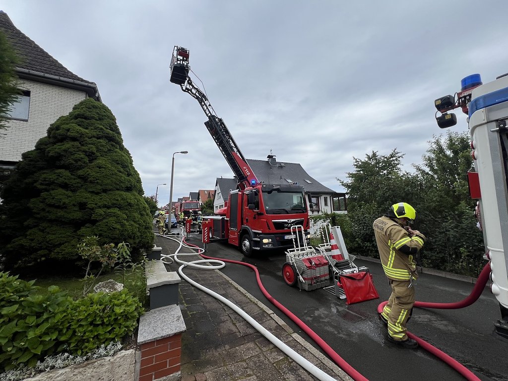 Für die Einsatzkräfte ging es in die Ludolfingerstraße. Hier brannte es in einer Doppelhaushälfte im ersten Obergeschoss. Nach ersten Informationen kam es in einem Zimmer im Obergeschoss aus bisher ungeklärte Ursache zu einem Brandausbruch.