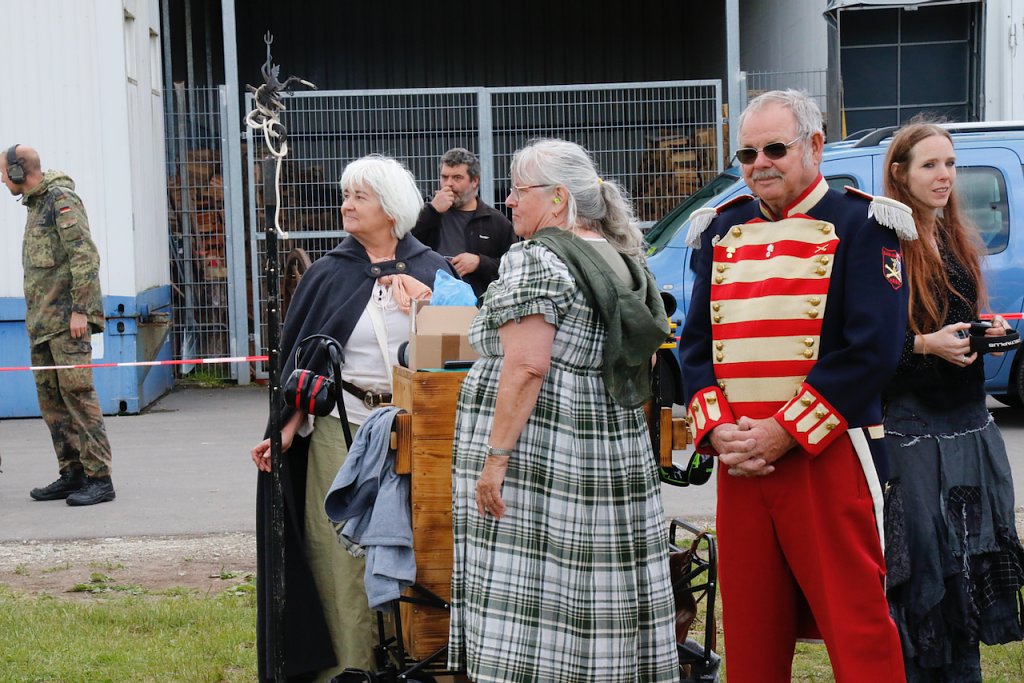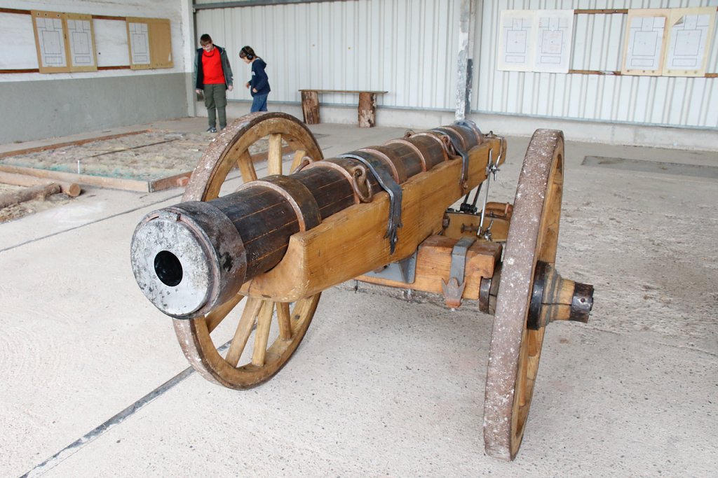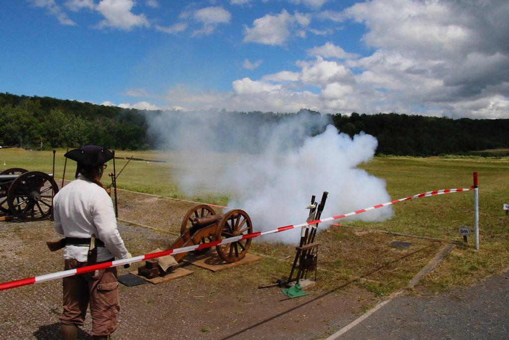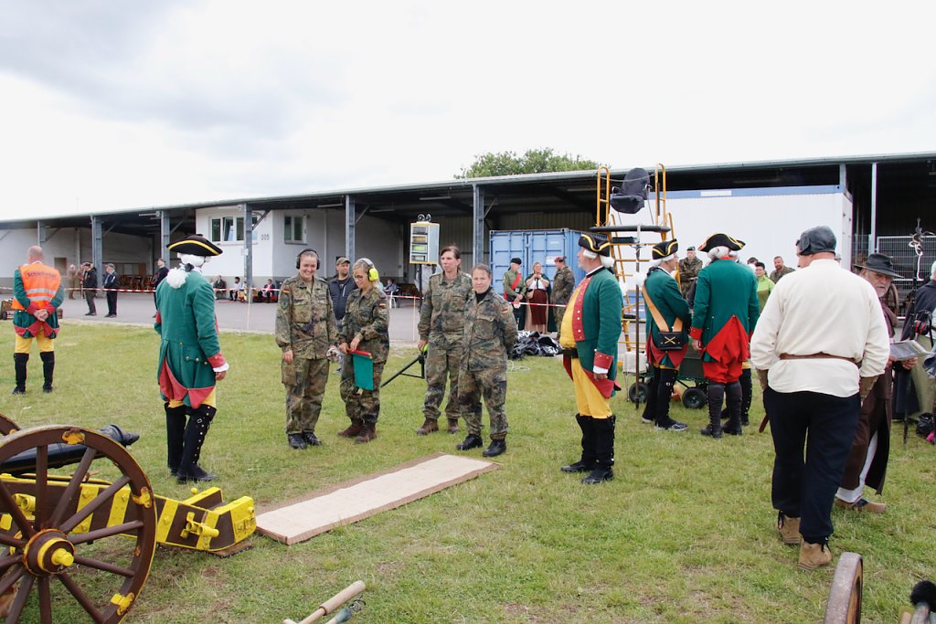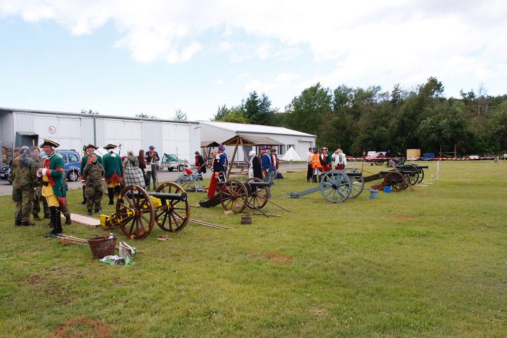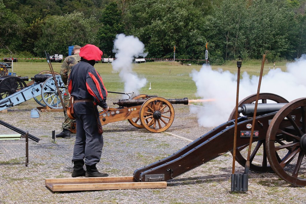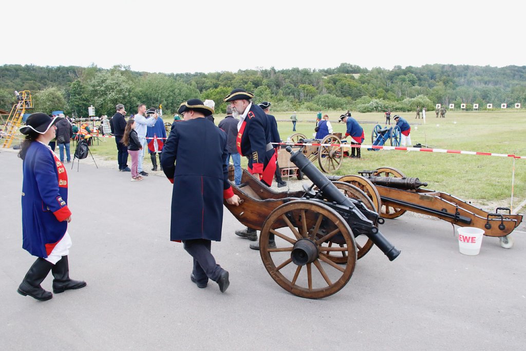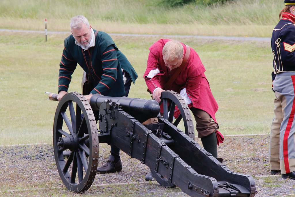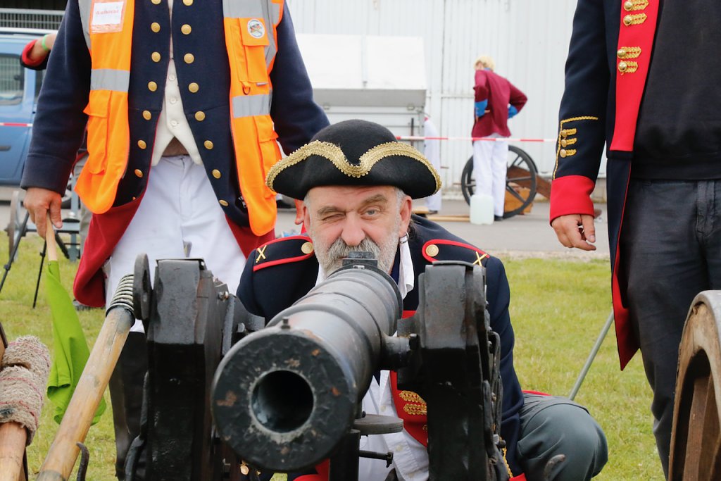 Mit dabei war auch Albrecht Uhlmann und sein Nordhäuser "Lindwurm", ein Nachbau des alten Stadtgeschützes, das die Altvorderen zu den "Sieben Wundern" Nordhausens zählten. Uhlmann stellt die Visierung heute aber nicht selber ein, er lässt schießen. An der alten Kanone stehen Raphael, Verena und Lukas, jeder im Range des Oberstleutnants. Die Artillerieschützen aus Munster müssen sonst Ziele treffen, die bis zu 30 Kilometer entfernt liegen, heute liegt die maximale Entfernung der Zielscheiben nur bei 400 Metern.