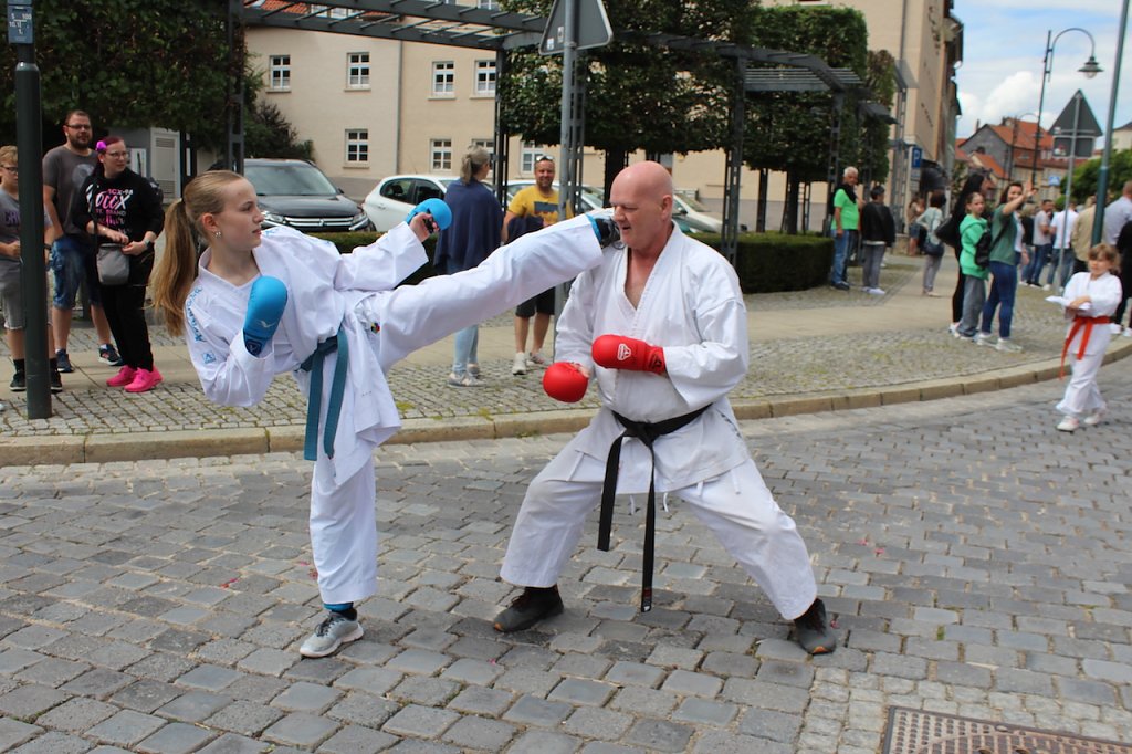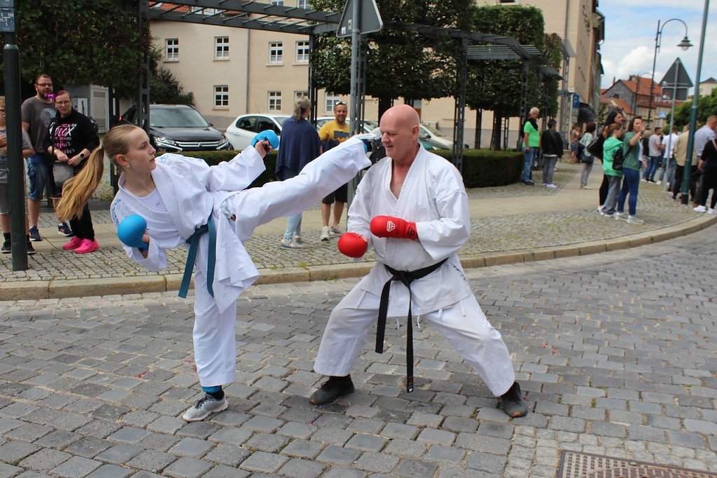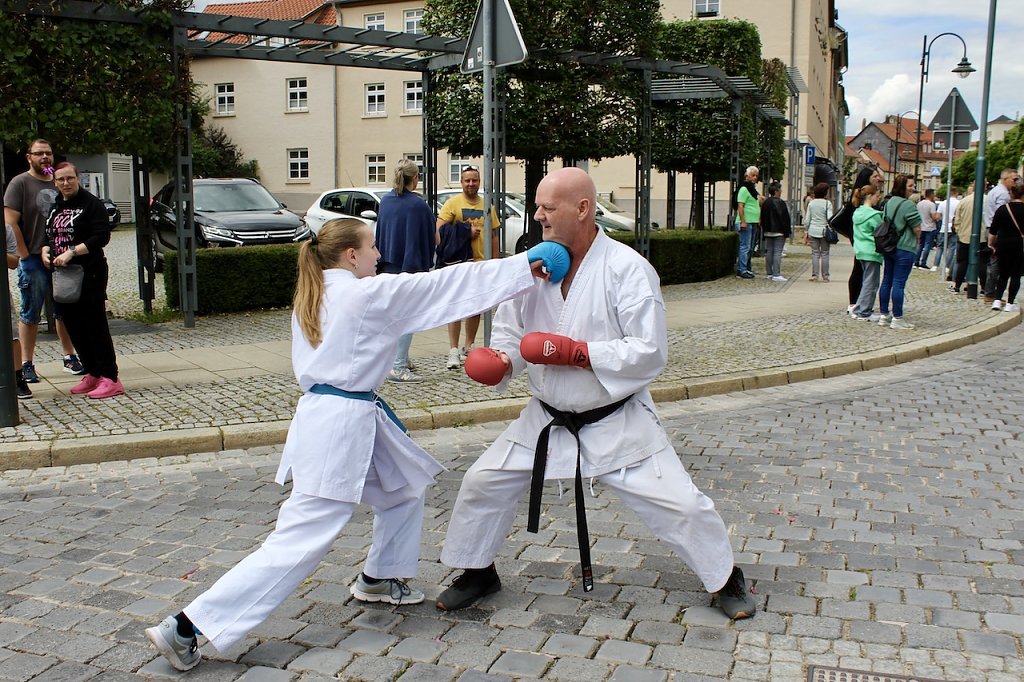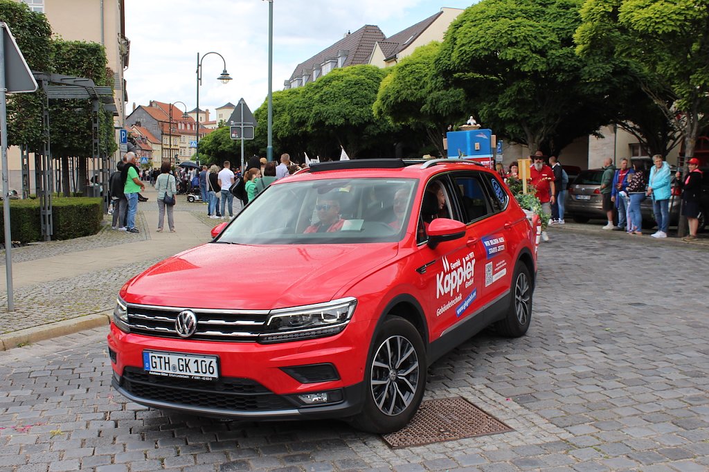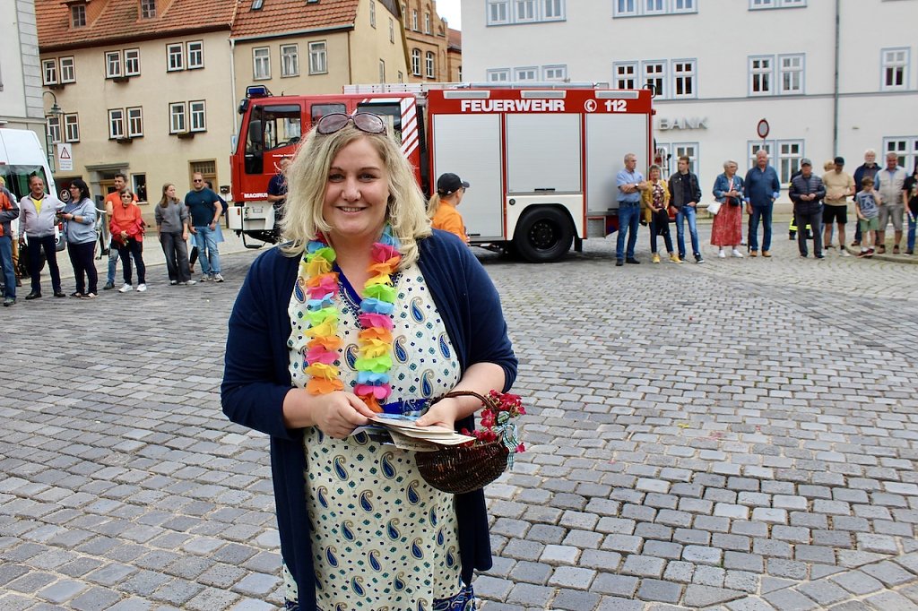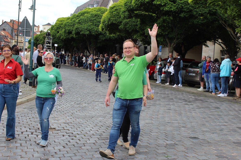 Mit großer Vorfreude wurde der Festumzug zum Brunnenfest in Bad Langensalza auch von den Tribünengästen erwartet (Foto: Eva Maria Wiegand)