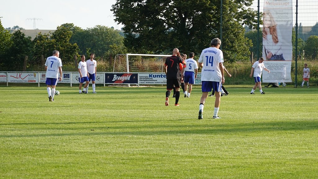Auf dem "heiligen" Rasen im Norden der Kreisstadt standen sich die "Ostauswahl" und die "Nordhausen Ü45" gegenüber. Sowohl für die Herren auf dem Platz, als auch für das interessierte Publikum waren es neben dem sportlichen Aspekt vor die vielen Gespräche, die sich natürlich um Erinnerungen des DDR-Fußballs einerseits und des Fußballs in Nordhausen rankten.