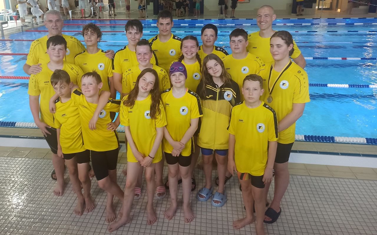 Auch die Nordhäuser Wettkampfmannschaft mit sechs Schwimmerinnen und neun Schwimmern