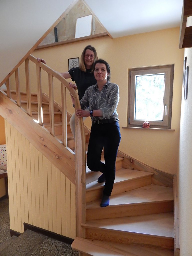 Auf Nachhaltigkeit hat man auch bei der Ausstattung geachtet, für die Möblierung ist man nicht zu Ikea gefahren, sondern zu Möbel Schwinn in Nordhausen. Besonders Stolz ist man auf die Befreiung der Treppe, die Holzexperte René Kopf an elf Tagen und in 130 Stunden Arbeitszeit bewältigt hat. Auch der wird am Samstag zugegen sein und, ganz im Sinne des Ansatzes, zu einer Wanderung in die Natur einladen, ab 13.30 Uhr geht es über die Danielsköpfe zur Antiquareiche.