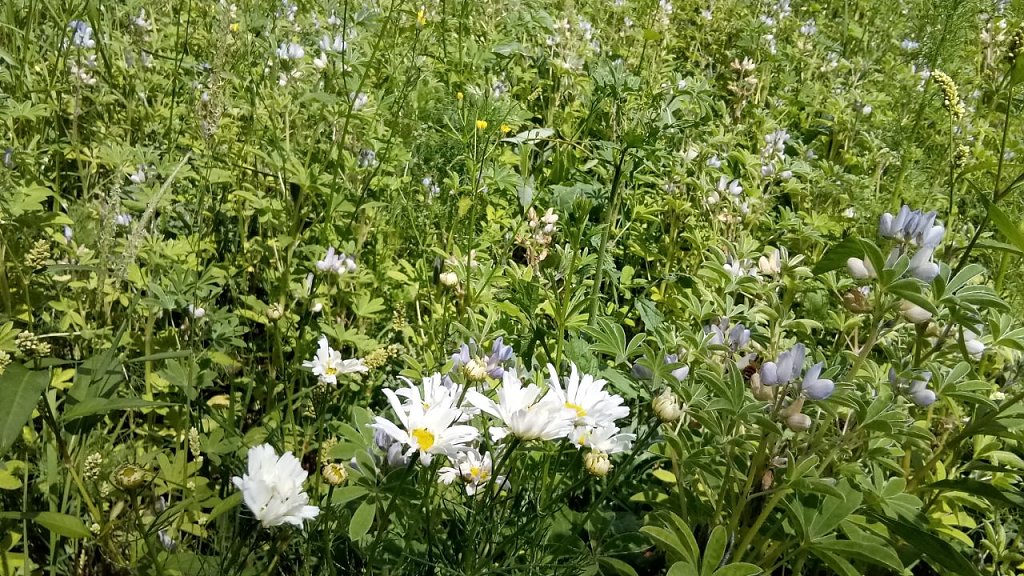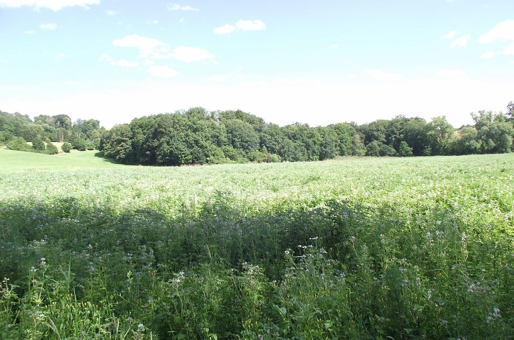 Auffallend ein blühendes Feld. Was blüht da an Pflanzen? Es muss was Gutes für Schmetterlinge & Co. sein. Es flatterte und summte. Der Landwirt oder Unternehmen tat was ökologisch Sinnvolles in unserer so ausgeräumten Natur.