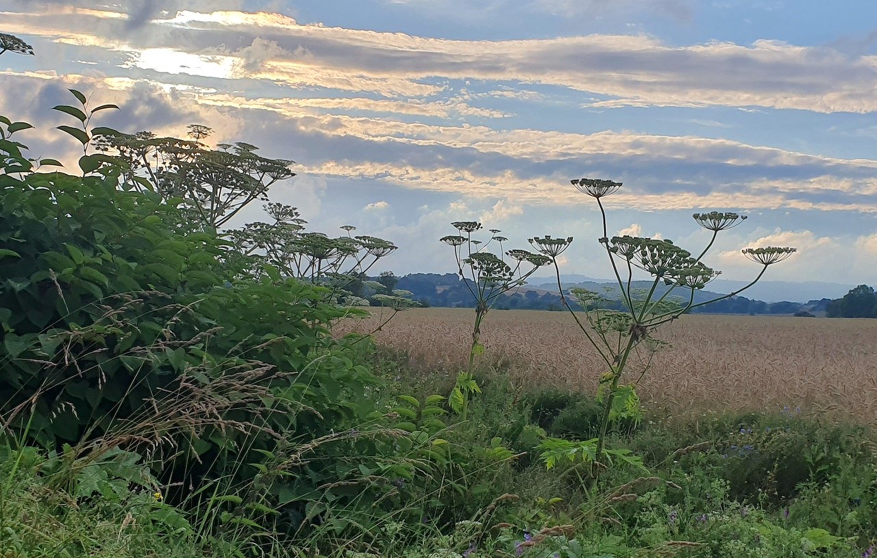 Diese eindrucksvollen Riesen-Bärenklau-Exemplare an einem Ackerrand in der Nähe von Obersachswerfen machen die Romantik eines Sommerabends perfekt. (Foto: B.Schwarzberg)