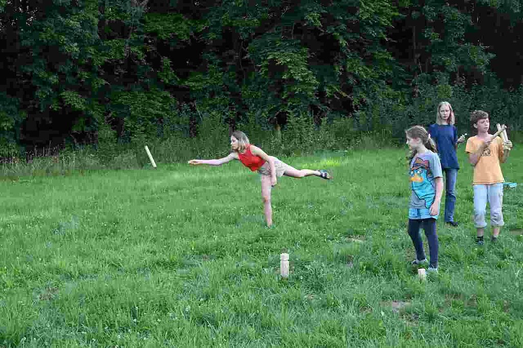 So viel handwerkliche Anstrengung fordert nun am Abend ihren Ausgleich durch Sport. Der Sportabend bietet dazu beste Gelegenheit. So können wir uns auspowern bei Yoga, Tischtennis, Wandern, Tanzen, Toben auf der Hüpfburg, beim Schach und anderem mehr.
