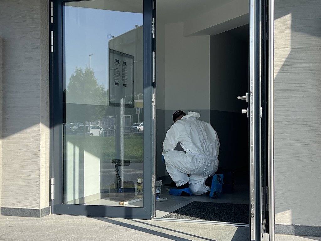 Anschließen war das Gebäude stark verraucht. Anwohner informierten sofort die Polizei, die mit vielen Kräften zu Einsatz kamen. In die Fahndungsmaßnahmen nach den Tätern, die vermutlich mit einer hochmotorisierten, dunkeln Limousine flüchteten, wurden eine dem Anlass entsprechend hohe Anzahl von Einsatzkräften einbezogen. Aus der Luft wurden die Maßnahmen durch einen Polizeihubschrauber unterstützt. Die Täter konnten bisher nicht gefasst werden.