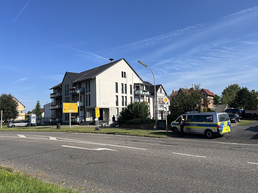 Das betreffende Gebäude ist zugleich als Wohnhaus in Nutzung. Dreizehn Anwohner wurden nach Rauchentwicklung zunächst evakuiert und in der örtlichen Feuerwehr untergebracht. Sie konnten mittlerweile in ihre Wohnungen zurückkehren. Personenschäden sind nicht zu beklagen. Weil unklar war, ob noch angezündeter Sprengstoff vor Ort war, wurde das betroffene Gebäude daraufhin durchsucht. Gegenwärtig laufen die Ermittlungen zur Tat. Hierzu kommen unter anderem Beamte des Thüringer Landeskriminalamtes und der Kriminalpolizei Nordhausen zum Einsatz.