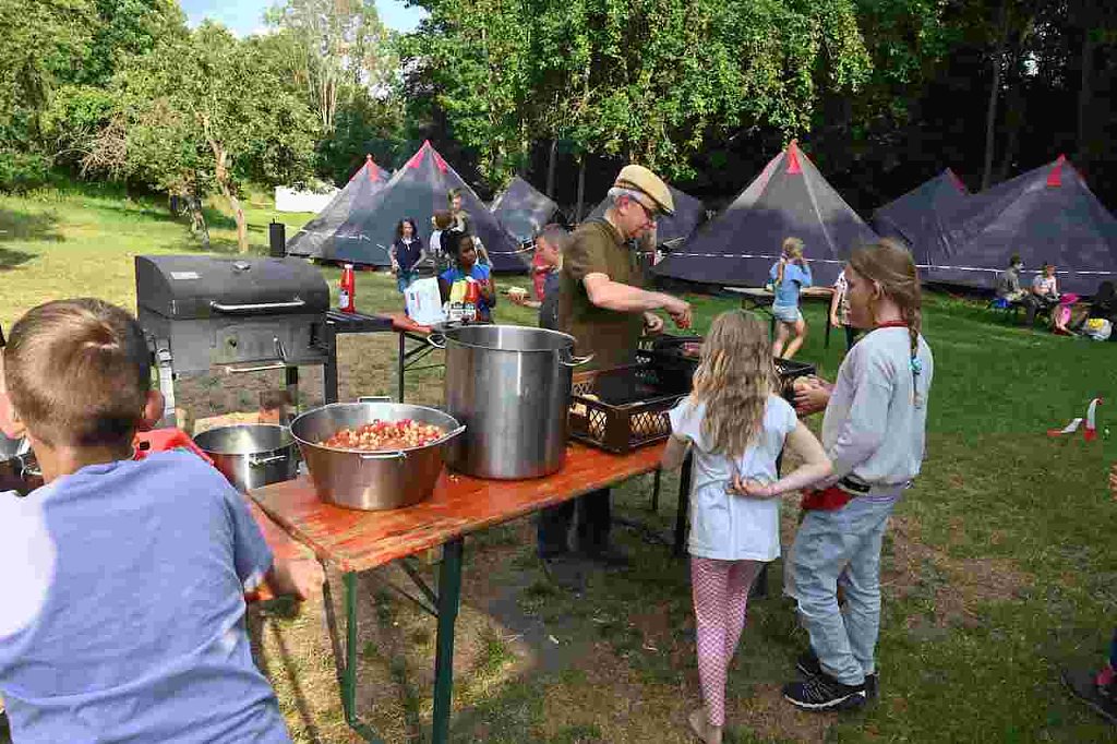 Nach so viel Bewegung und Erlebten ist es genau richtig, dass wir am Grill mit leckeren Würstchen zum Abend versorgt werden.