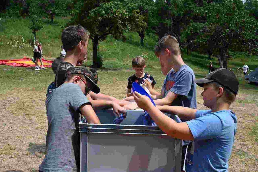 Sehr beeindruckende Schlussworte für unser Theaterstück, die uns nachdenklich stimmen und in der anschließenden Bibelarbeit über Gerechtigkeit nachdenken lassen. Geschäftig geht es am Nachmittag zu. Zum letzten Mal hören wir das Tippen der Schreibmaschinen, das Trommeln der Eimertrommeln und das Ratschen der Sägezähne. Überall wird noch einmal fleißig gewerkelt um die schönsten Erinnerungen mit nach Hause zu nehmen.