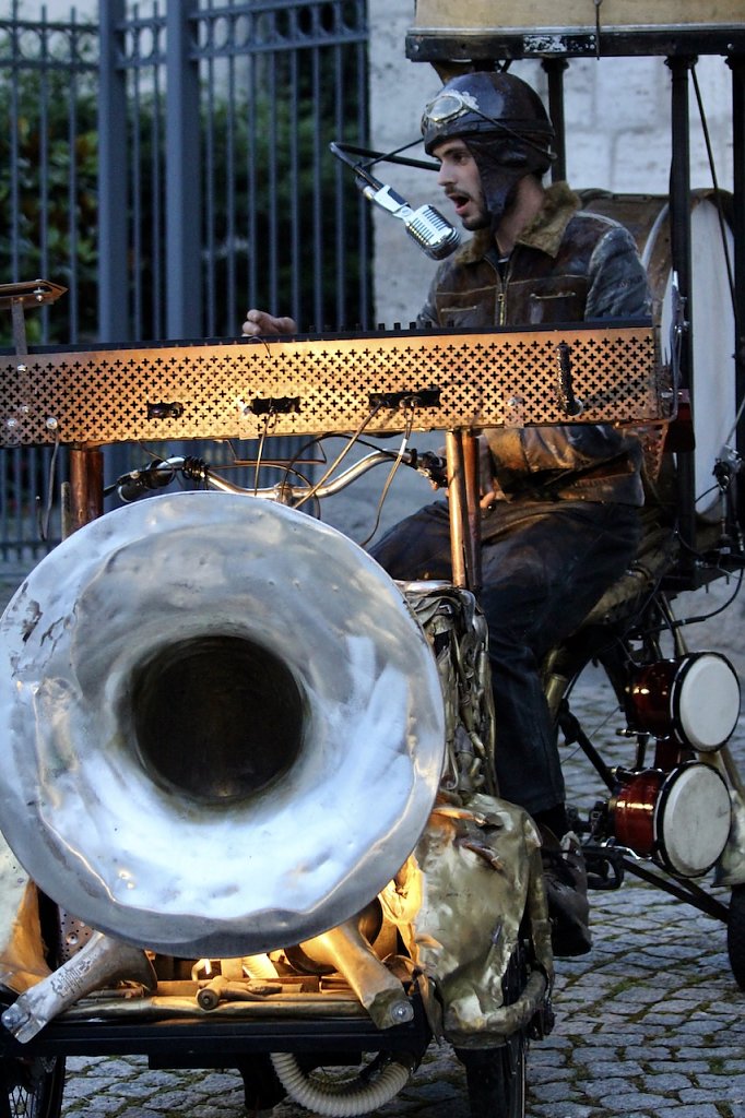 Der französische Musikclown Le pianoteur mit seinem ökologischen Fahrrad-Orchester zog nicht nur durch sein ungewöhnliches Gefährt die Blicke auf sich, sondern auch durch sein hochprofessionelles musikalisches und schauspielerisches Können.