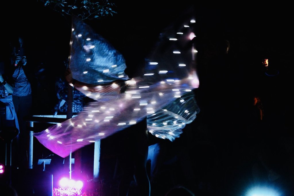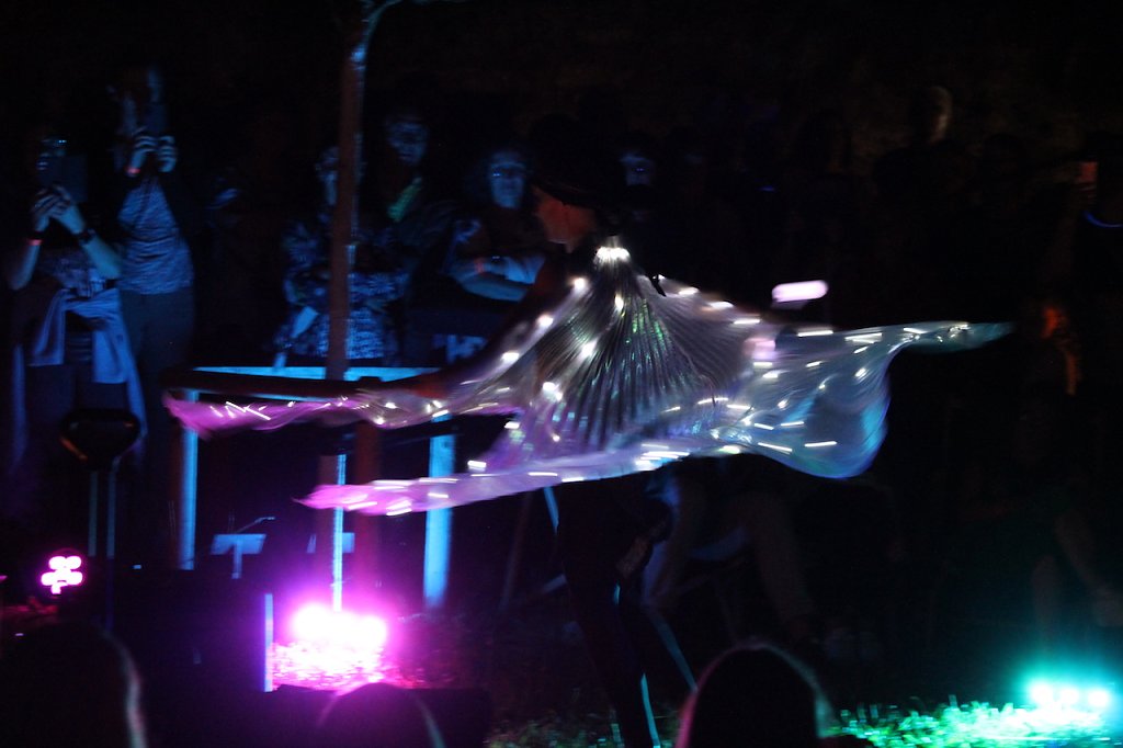 Kurz vor Mitternacht begeisterte Dandeli - on fire mit einer Licht- und Feuershow die Gäste der Sommerlaune mit einer spektakulären Darbietung. Eine rasante, ausgeklügelte und mitreißende Show schickte sprudelnde Farbeffekte in den Nachthimmel. Das Artistenduo Daneli-on-Fire begeistert seit 2017 mit Tanz, Artistik und moderner LED-Kunst. Sie zeichnen, nach abgestimmter Musik mit brennenden Stäben und Reifen, Bilder in die Luft. Das Publikum der Sommerlaune belohnten sie mit anhaltendem Applaus.