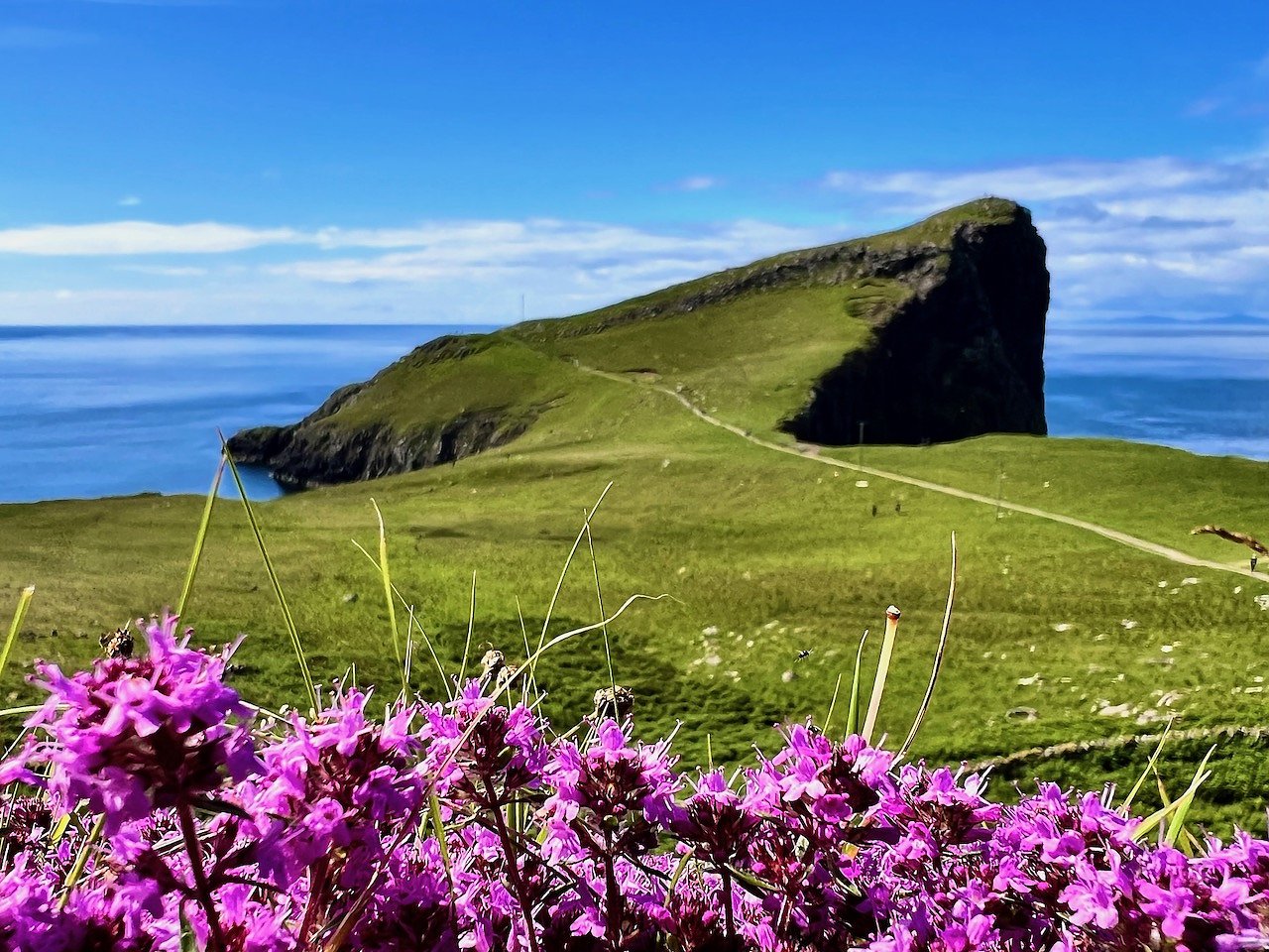 Text: Hallo, mein schönstes Sommererlebnis 2024 war der Besuch bei meiner Tochter Sophie in Schottland. Wir haben eine Tour auf der Isle of Skye gemacht bei tollem Wetter und einer super Landschaft. Unter anderem haben wir Portree, Neist Point und vieles mehr besucht. Hier einige Eindrücke. Viele Grüße Ivonne Koch.
