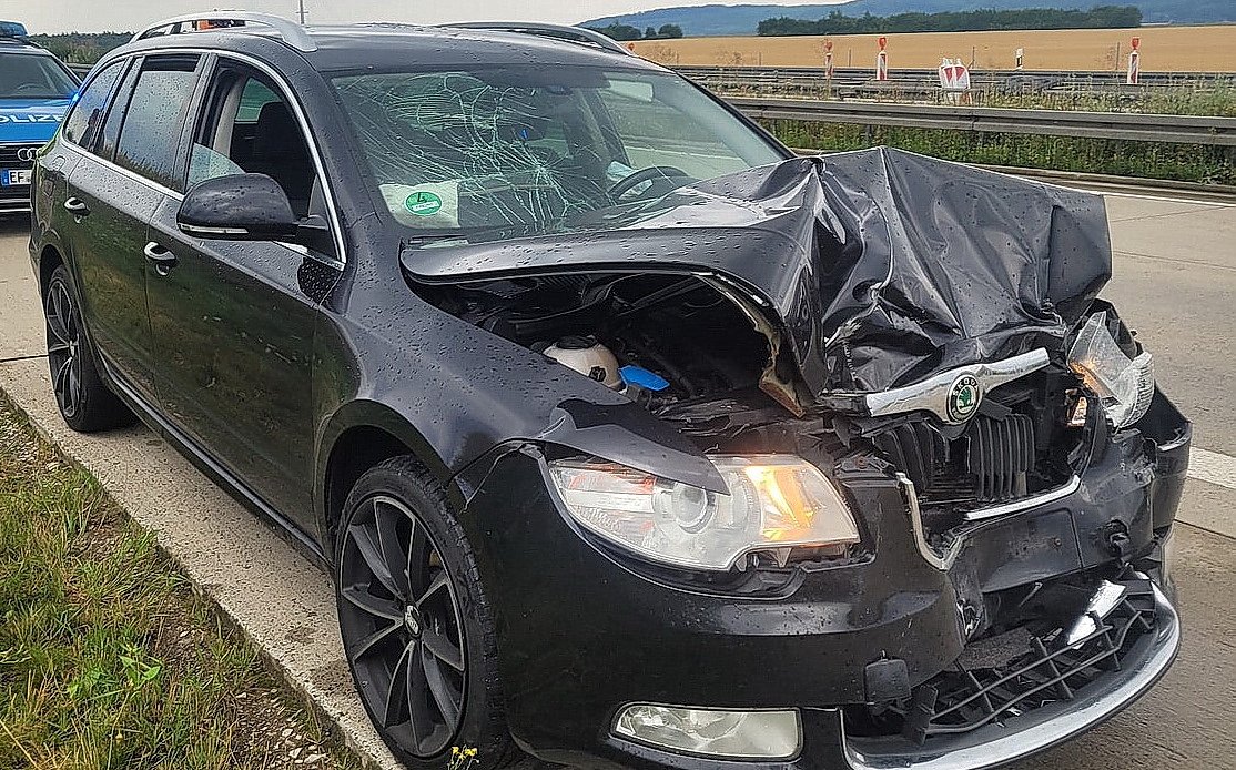 Auf Grund von Aquaplaning geriet sein Fahrzeug ins Schleudern und prallte in die Mittelleitplanke. Ein nachfolgender PKW überfuhr Trümmerteile der Kollision. Kurz danach ereignete sich ein Folgeunfall.