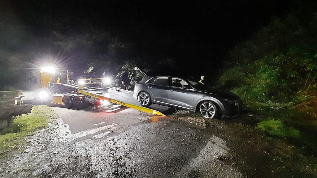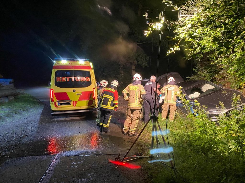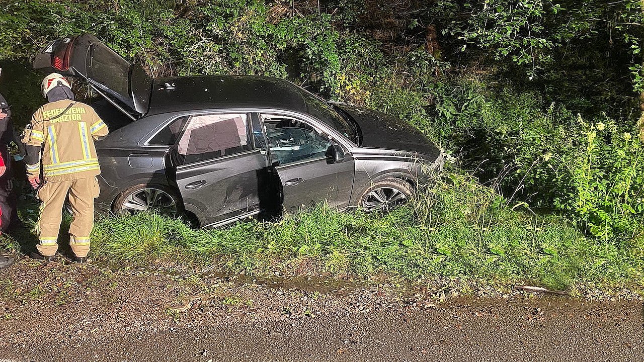 In einer Rechtskurve kam das Fahrzeug nach links von der Fahrbahn ab und rutschte in einen Graben. Hierbei lösten die Airbags aus, das E-Call-System aktivierte sich und setzte einen Notruf ab, eine Verbindung zur Rettungsleitstelle wurde automatisch hergestellt.