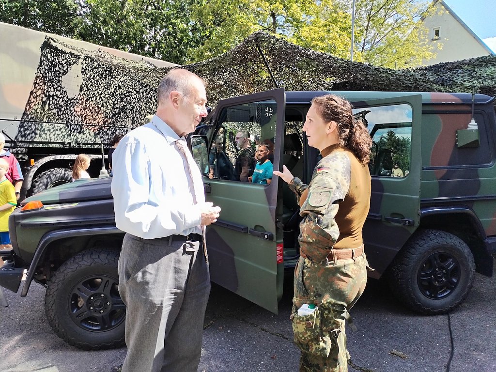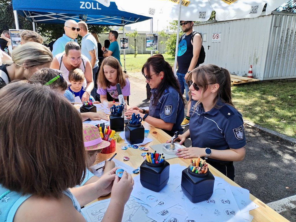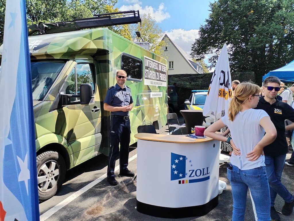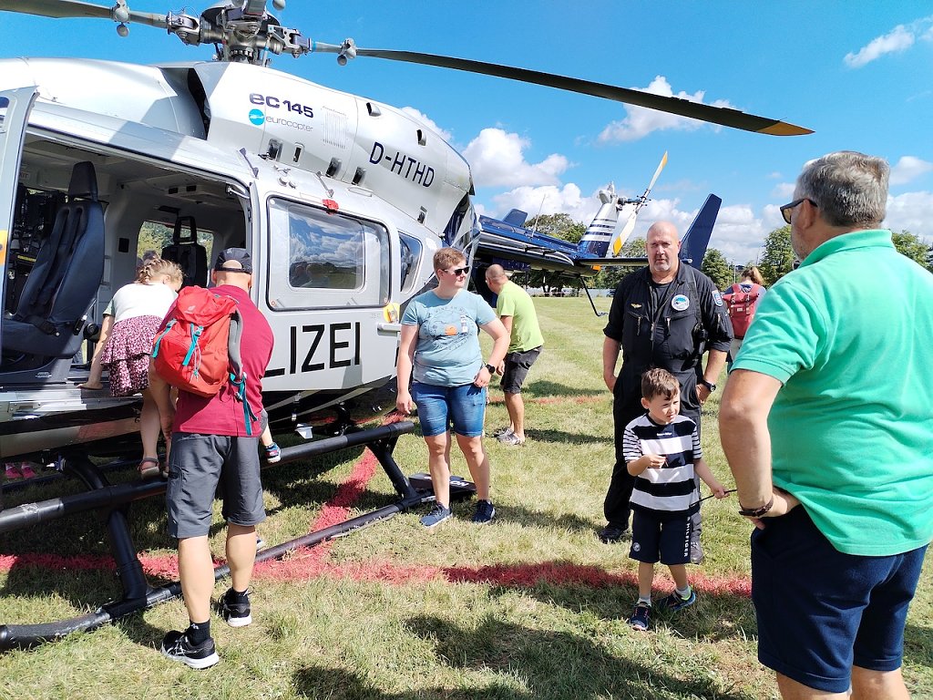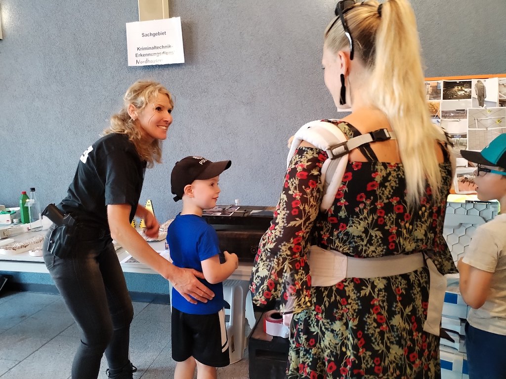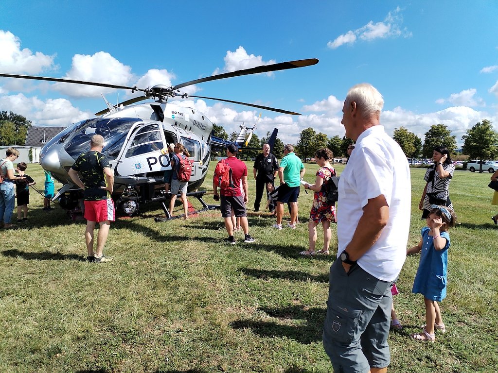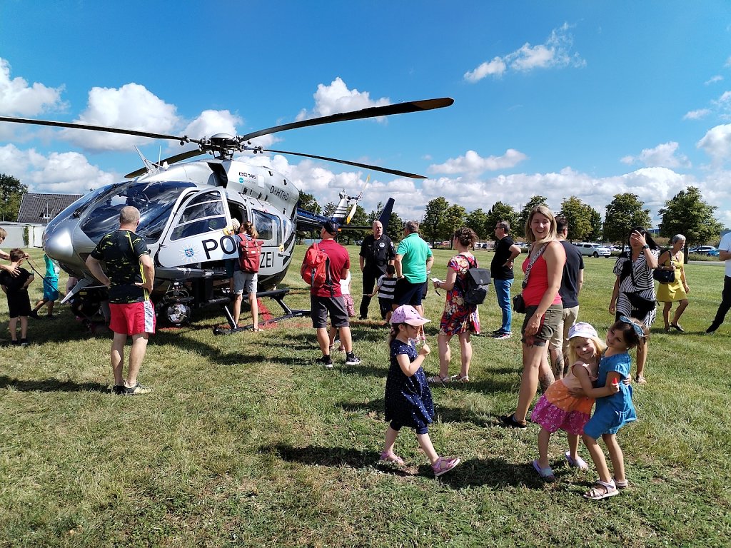 Der Andrang auf den Polizeihubschrauber, der gerade von einem Einsatz zurückkam, war sehr groß, da der normale Betrieb bei der Polizei auch heute weiterlief. Aber auch die Bundeswehr und der Zoll, die als externe Partner dabei waren, konnten an ihren Ständen viele Besucher verzeichnen. Bereits eine halbe Stunde vor der Eröffnung kamen die ersten Gäste, um einen Einblick in die Arbeit der Polizei zu bekommen.