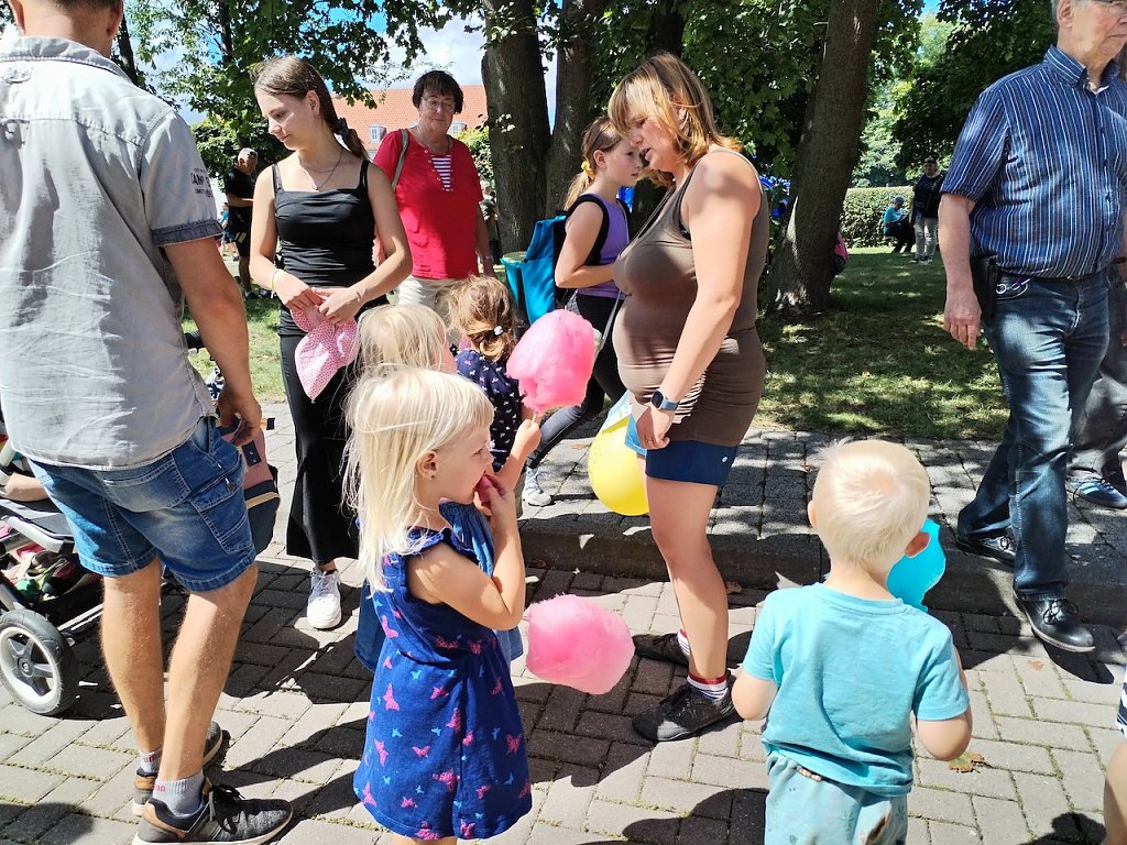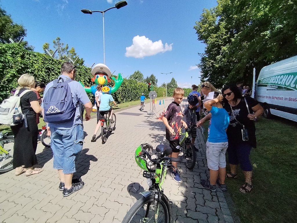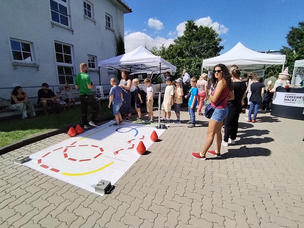 Für kleine Besucher gab es eine Spielstraße mit Hüpfburg, ein Spielmobil und einen Stand mit Popcorn und Zuckerwatte. Auch eine Stempelchallenge durfte nicht fehlen. Hierbei konnten die Kinder an ausgewiesenen Stationen mit Karten Stempel sammeln. Wer alle Stempel bekommen hatte, auf den wartete am Ende beim Fahrradparcours ein kleines Präsent.