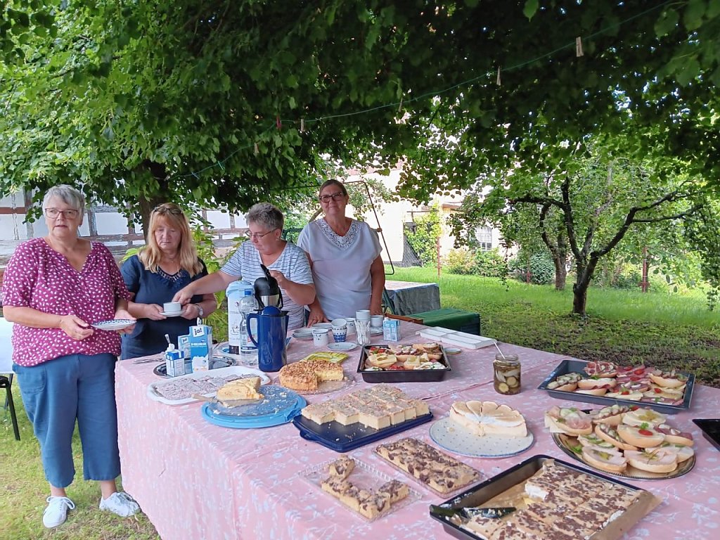 Nach Verneigung vor dem Denkmal gingen die Anwesenden dann in den Museumsgarten. Dort gab es Gelegenheit zu netten Gesprächen bei Kaffee, selbstgebackenem Kuchen, belegten Brötchen und Getränken. Das Museum stand zur Begehung offen, in der Gebrüder Wolf Stube gab es viele Fragen, die beantwortet werden konnten.