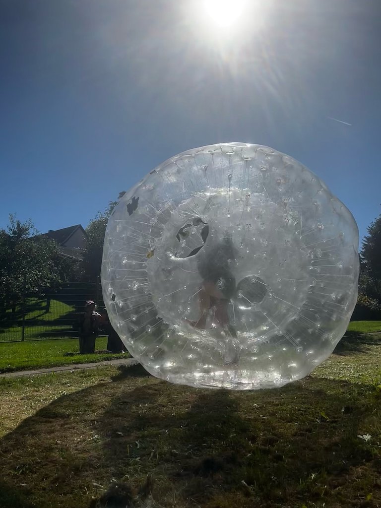 Alle Teilnehmer mussten zeigen wie schnell sie laufen können. Beim Zorbingball-Lauf kletterten Mann, Frau oder Kind in eine riesige Luftkugel und rannte bzw. kugelte sich, so schnell sie konnten ins Ziel. Das war auch lange nach der Olympiade, am späten Abend noch für viele einen Versuch wert.