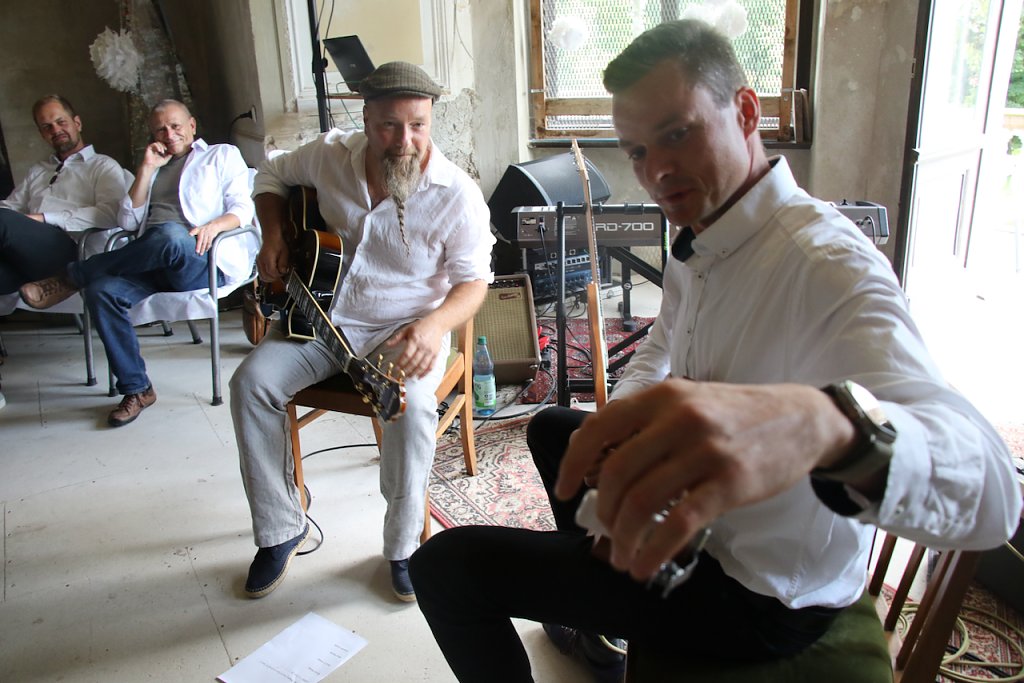 Nach zwei Huschen wollte man lieber auf Nummer sicher gehen: die Neuauflage des Diner en blanc feierte in der Villa des Park Hohenrode Premiere. Trockenen Hauptes und gut versorgt machte man es sich im Erdgeschoss gemütlich, schmauste und lauschte der Musik des Duos Aderholdt-Zierdt und der Jazz-Combo Triomalöhr.