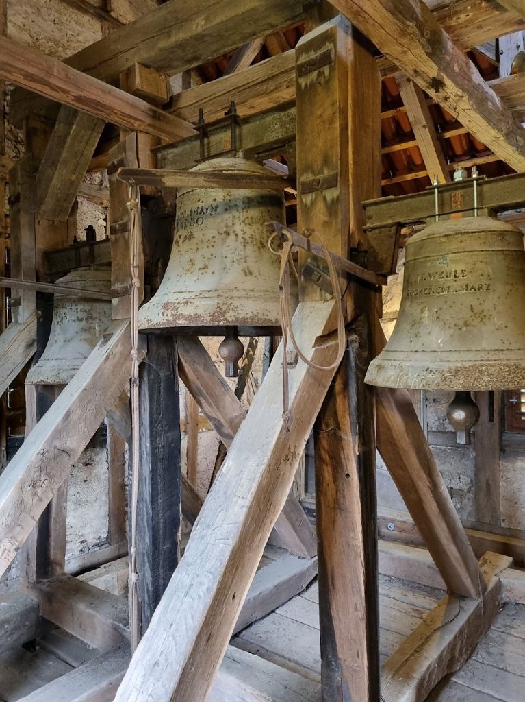 Zum Tag des offenen Denkmals am 8. September werden sie, nachdem sie fest eingerichtet sind, das erste Mal offiziell läuten und auch da wird es ein gemütliches Beisammensein mit Musik im Kirchgarten geben. Die alten Eisengussglocken stehen später fest verankert im Kirchgarten und können, hoffentlich noch lange, angeschaut werden.
