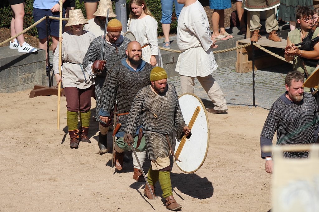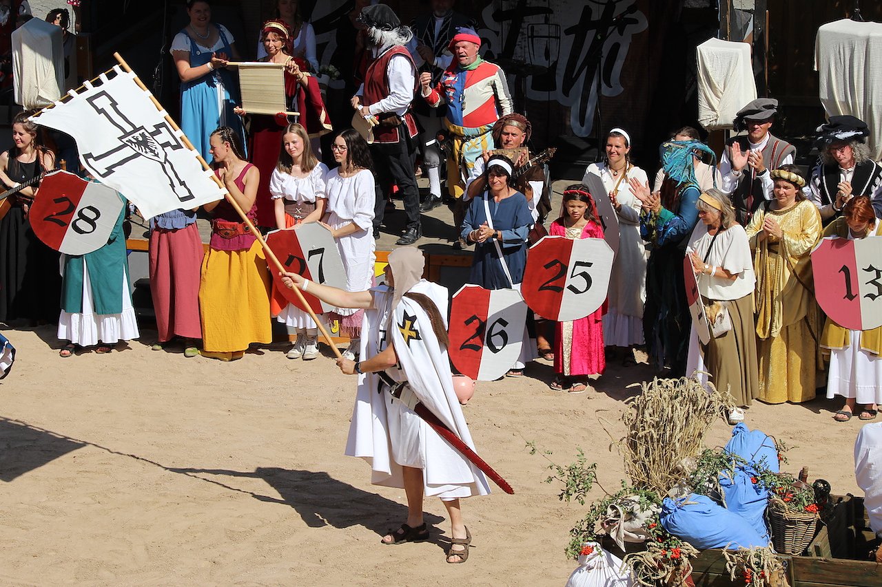 Wichtigster Punkt, bevor ausgelassene Völlerei und Vergnügungen ihren unaufhaltsamen Lauf nahmen, war das Versprechen des ersten Bürgers der Stadt, auch im kommenden Jahr wieder ein Mittelalterfest ausrichten zu wollen. Man solle sich ein Wochenende lang keine Sorgen machen und den Alltag vergessen, schlug er sehr zur Freude seiner Zuhörer vor. Die begannen auch sofort, seine Empfehlung an den vielen Schauplätzen in der Stadt in die Tat umzusetzen.