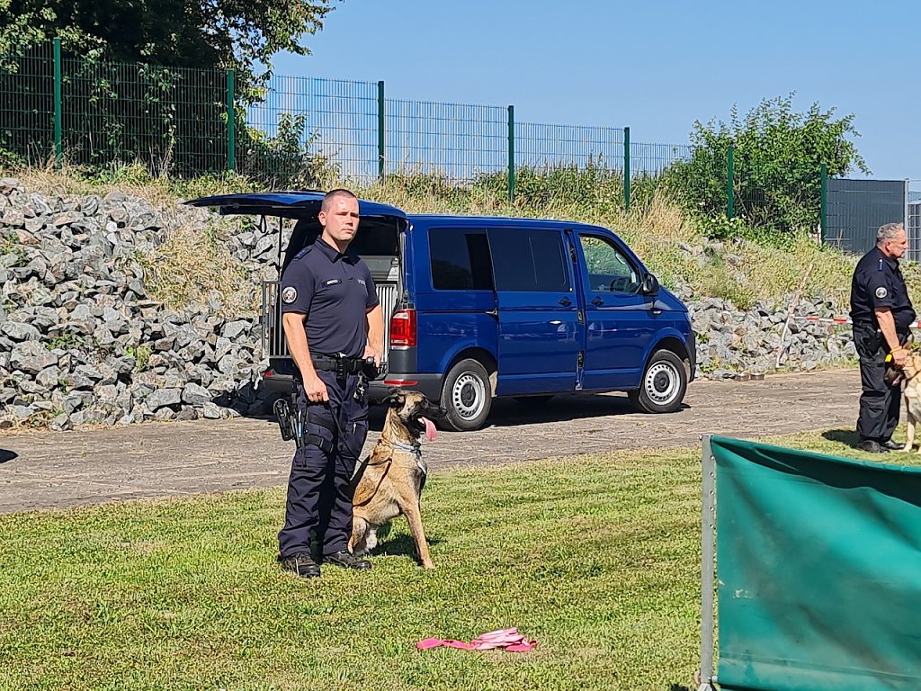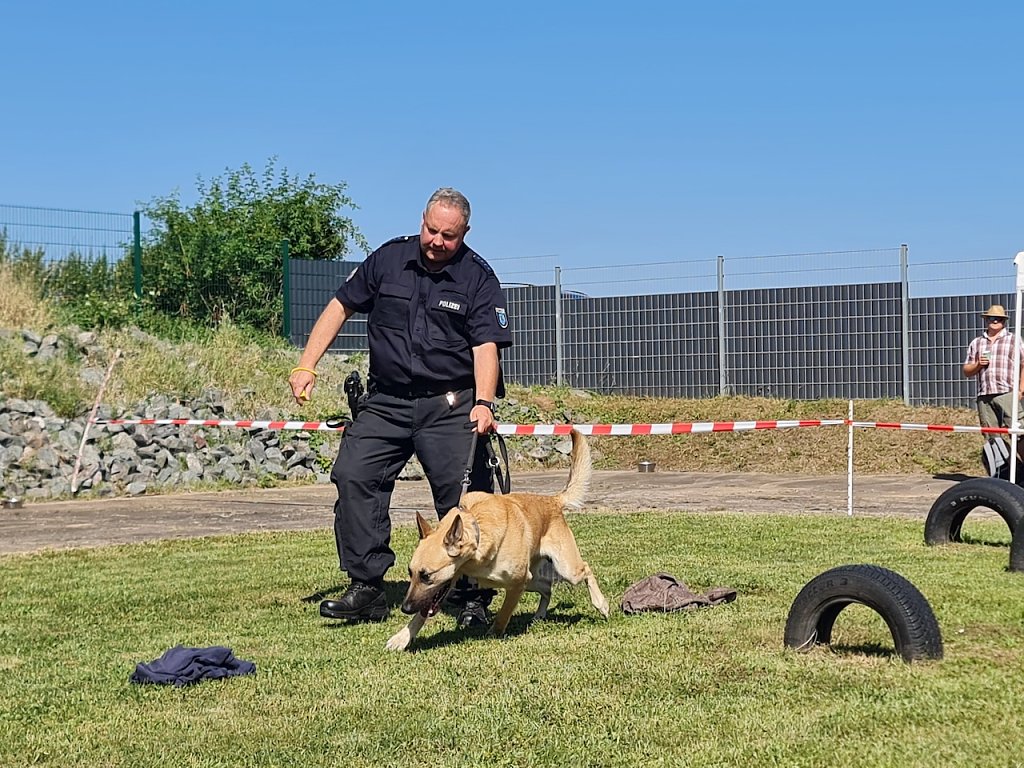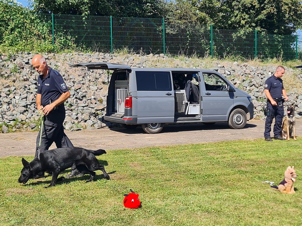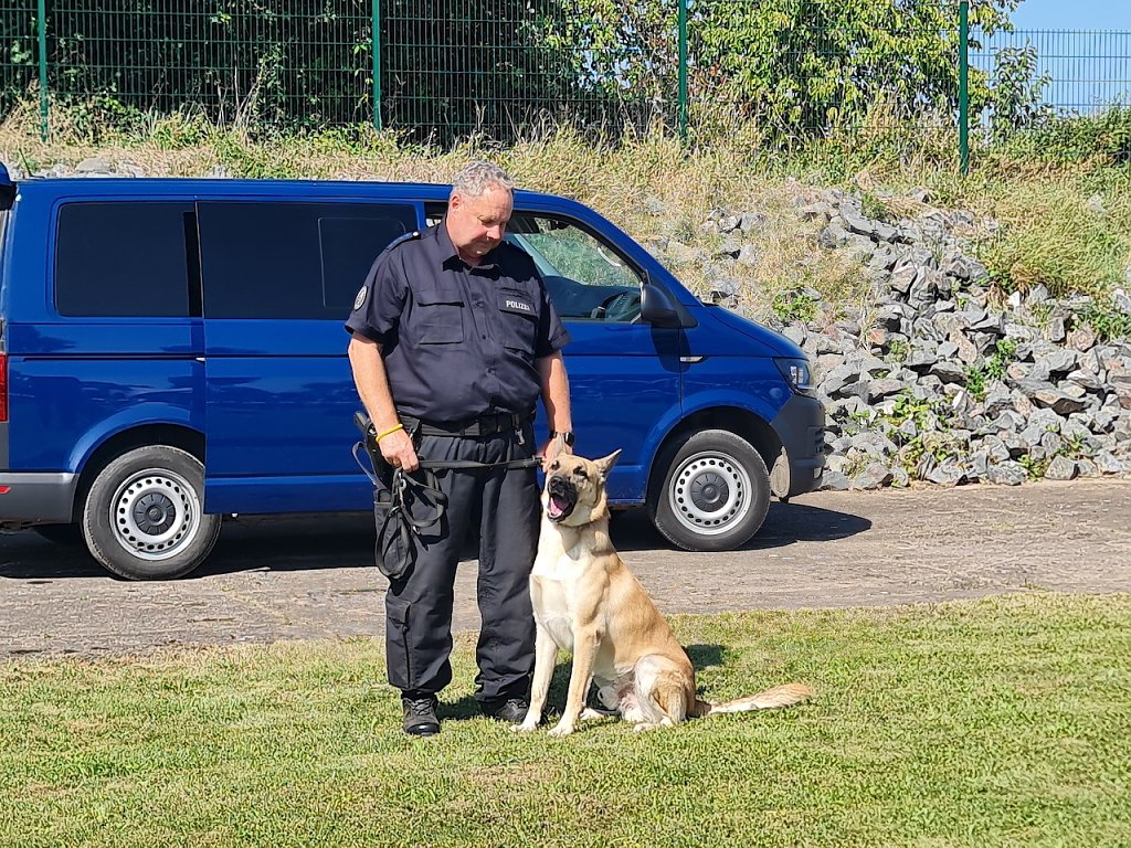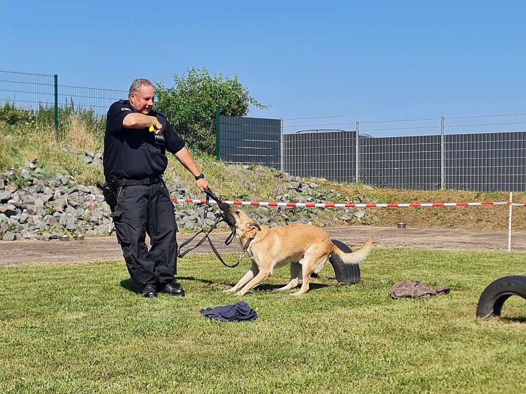 Als ehemaliger Gast des Tierheims durfte auch Schäferhund Mexx nicht fehlen, der zwischenzeitlich als Drogenspürhund tätig ist. Er hat bei Familie Niemand ein neues zu Hause gefunden und genoss seinen großen Auftritt bei der Diensthundestaffel der Landespolizeiinspektion Nordhausen am Nachmittag auf dem Gelände des Tierheims. Mein Mann hat einen neuen Partner gesucht und dann haben wir uns nach einem Tier umgesehen. Hier im Tierheim haben wir ihn dann gefunden, freute sich Ute Niemand, die heute zum Tierheimfest dabei war.