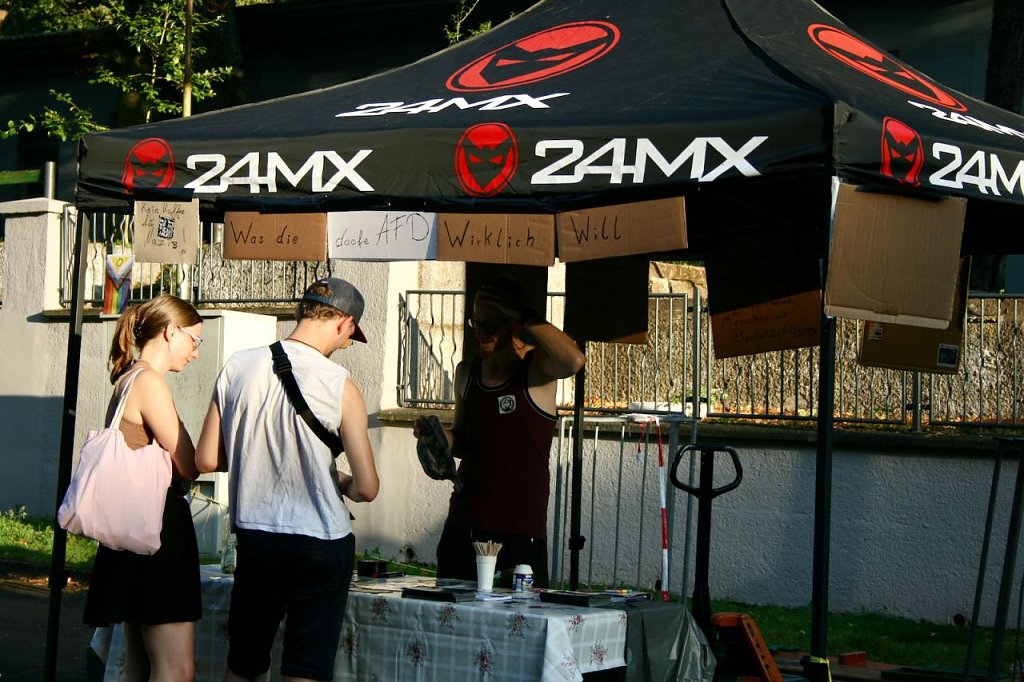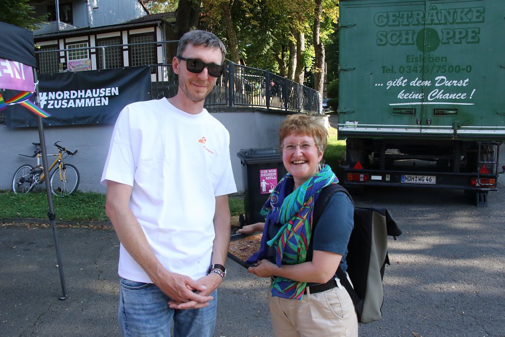 Hat das Engagement damals etwas am Wahlausgang gedreht? Vielleicht. Ein Jahr später steht eine weitaus größere Richtungsentscheidung im Thüringer Landtag an, es wird nur einen Wahlgang geben und die Umfragen sehen zwei Extreme vorne. Auch diesmal will das Nordhäuser Bündnis den Trend nicht unwidersprochen stehen lassen. Am Nachmittag eröffnete man ein weiteres mal ein gemeinsames Demokratiefest, diesmal auf dem Gehegeplatz und nicht einen Tag sondern eine Woche vor der Wahl.