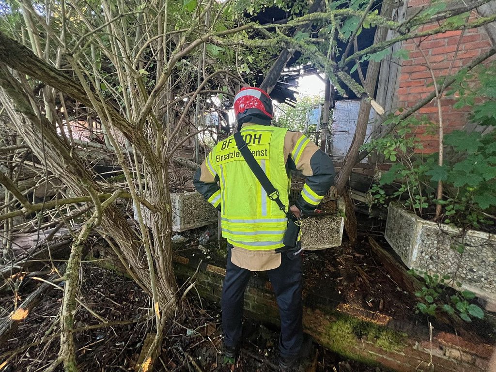 Kurze Zeit später wurden die Freiwilligen nachalarmiert. Mit einem Großaufgebot an Einsatzkräften und Fahrzeugen rückte die Feuerwehr an. Die letzten Brände hier auf diesem Gelände haben uns gelehrt, dass sich das Feuer sehr schnell ausbreiten kann, erklärt Einsatzleiter Sandro Hertel.