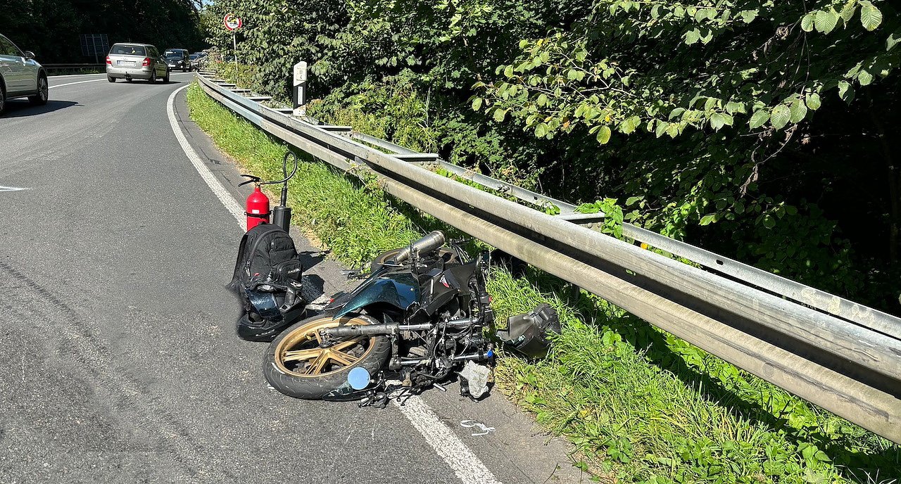 Der Kradfahrer musste zur ärztlichen Versorgung ins Krankenhaus. Die Straße musste aufgrund des Unfalls und der Bergungsmaßnahmen voll gesperrt werden, was zum Rückstau führte. Auslaufende Betriebsstoffe wurden durch die Feuerwehr aufgenommen und die Fahrbahn gereinigt. An den Fahrzeugen entstand ein geschätzter Gesamtschaden von 9.000 Euro. Der Pkw Skoda und das Krad mussten abgeschleppt werden.