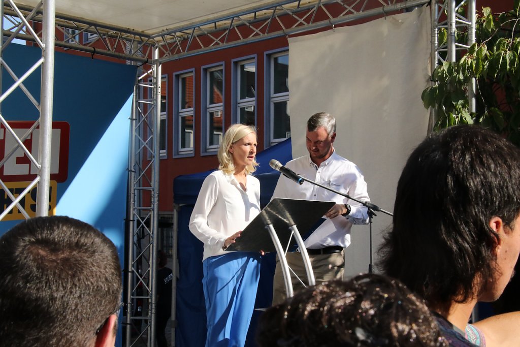 Bevor der jedoch auf die Bühne trat, waren erst einmal die Nordhäuser Kandidaten für die Landtagswahl an der Reihe, Kerstin-Düben Schaumann und Jörg Prophet. Einführende Worte kamen von Andreas Leupold, man begann mit einer Schweigeminute für die Opfer des Solinger Attentats.