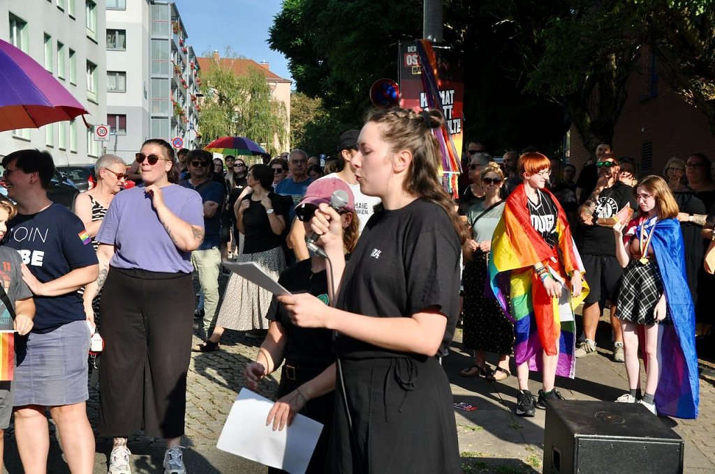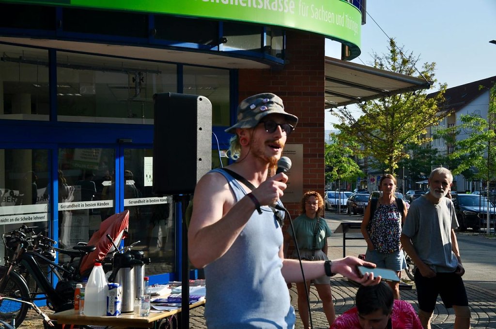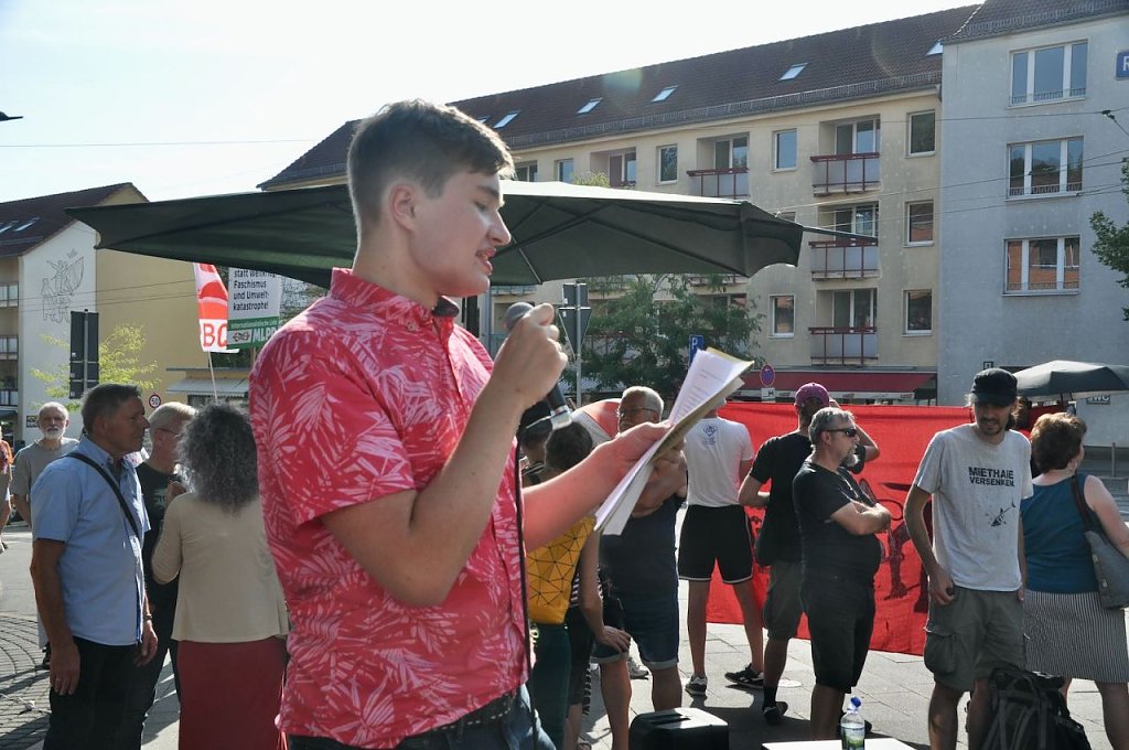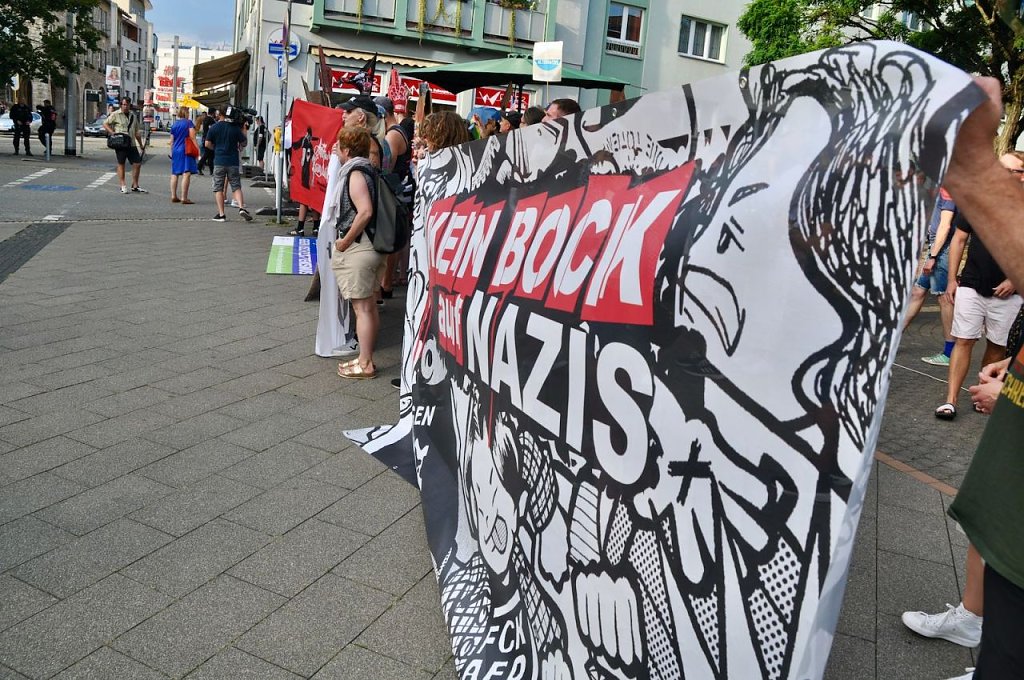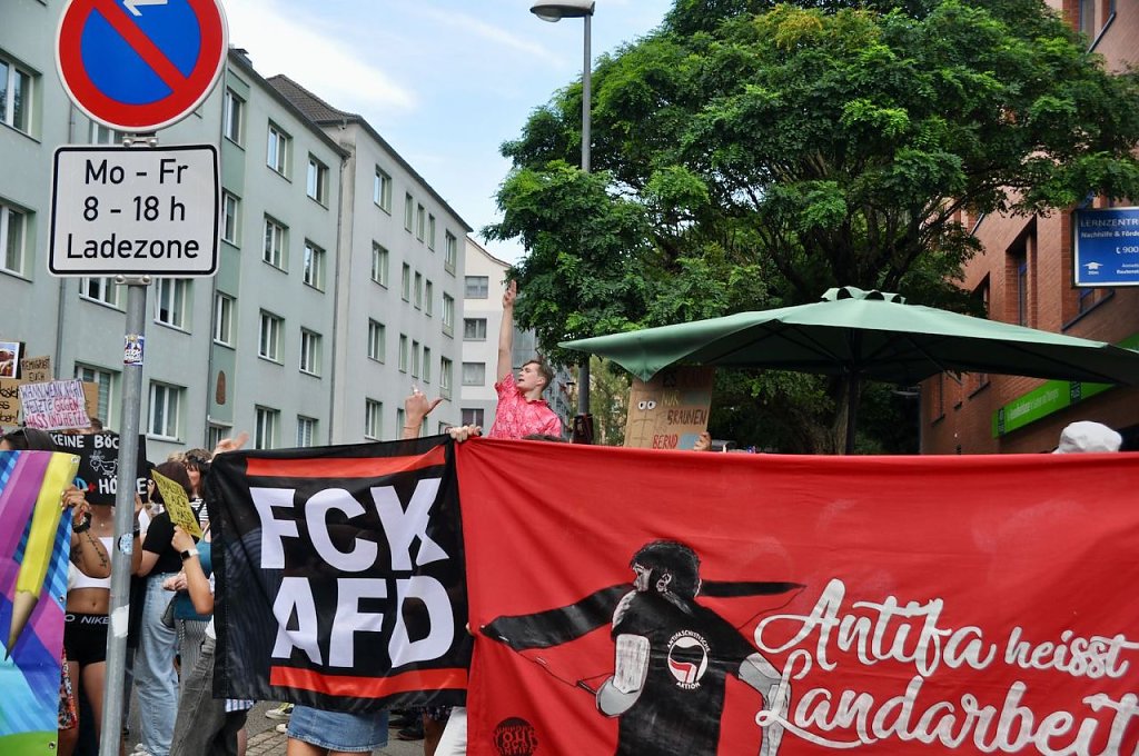 In dem Tonfall geht es weiter, das Publikum applaudiert, in der Weberstraße versucht man lautstark dagegen zu halten, ohne viel Erfolg. Das Bürgerfest geht ohne größere Zwischenfälle zu Ende. Es wird nicht der letzte Auftritt von Prophet und Höcke gewesen sein, wenn in einem Jahr Bundestagswahl ist, will man wieder auf den Rathausplatz kommen.