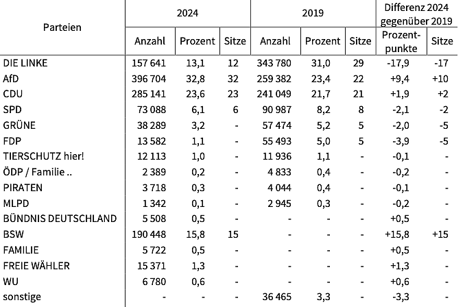 Vorläufiges Ergebnis der Landtagswahl 2024