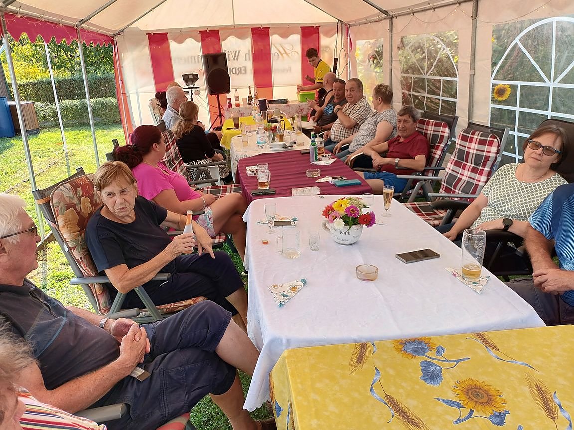 Das große Zelt wurde aufgebaut. Pünktlich um 15.00 Uhr hat der Obmann Detlef Wiegleb das Fest eröffnet. Begrüßt wurde der Vorstandsvorsitzende Holger Bachmann mit seiner Gattin und sein Stellvertreter Dietmar Fenske und die ehemaligen Gartenfreunde des Ganges 2 Familie Schumann.