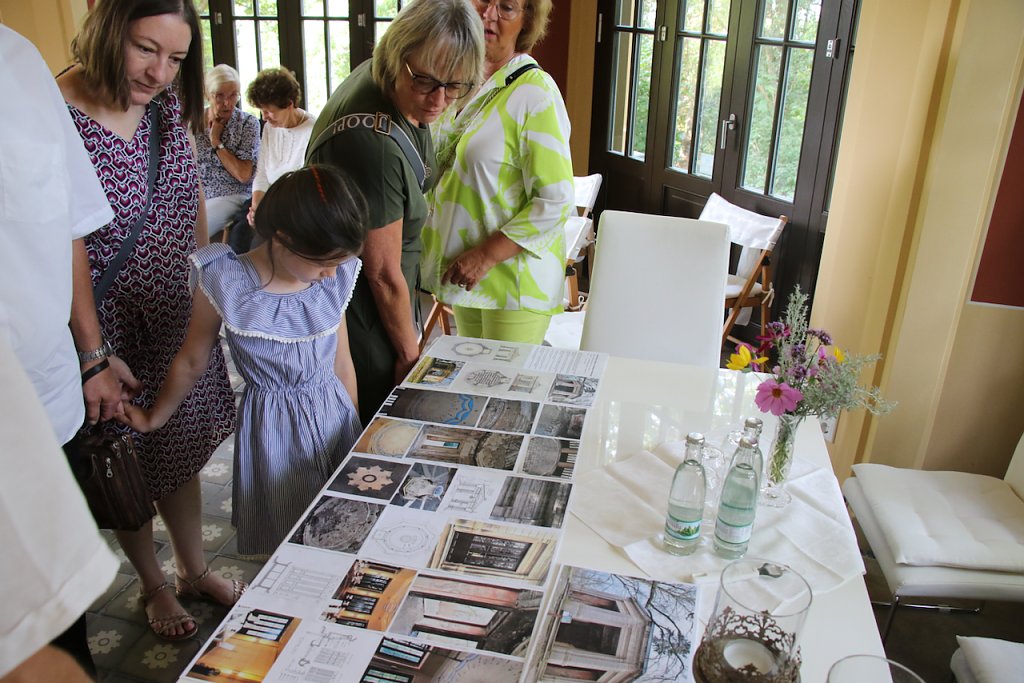 Wie viel Herzblut, Kraft und Geld allein in den kleinen Pavillon geflossen sind, führte Architekt Hans Jürgen Gerboth aus, der drei Jahre Schritt um Schritt an der Wiederauferstehung mitgetan hat. Alles zerschlagen, das Dach ruiniert, die Feuchtigkeit in den Mauern - der alte Glanz des kleinen Saals war völlig vergessen. Mit viel Schweiß und akribischer Kleinarbeit wurde das Gebäude bis zur kleinsten Fließe wieder aufgearbeitet und meisterlich geschmückt.