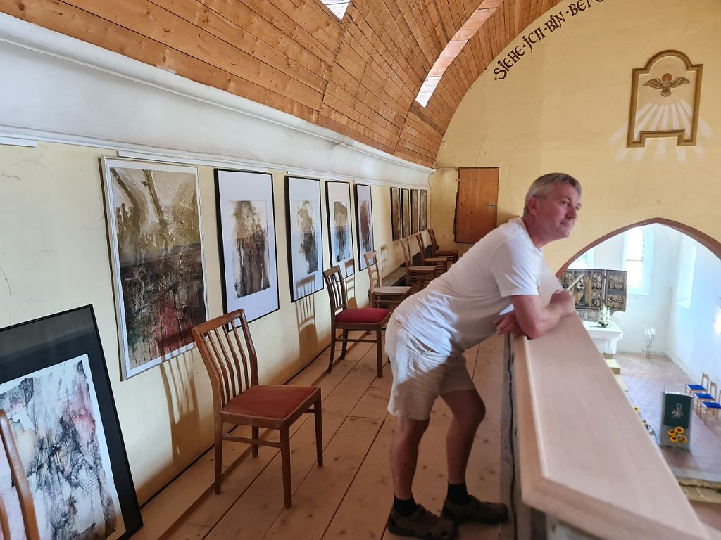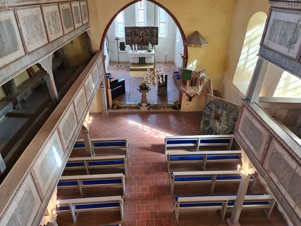 Ab 11.00 Uhr konnte die Kirche besichtigt werden. Im Anschluss gab es einen besonderen Festgottesdienst, den Christopher Bischoff abhielt. Im Mittelpunkt der Veranstaltung standen neben der Turmuhr auch die derzeit stattfindenden Restaurierungsarbeiten und eine Kunstausstellung der Künstlerin, Kunstpädagogin und ehemaligen Lehrerin Karin Kisker aus Nordhausen.