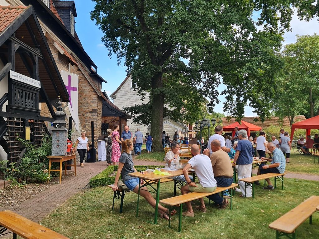 Im Rahmen eines bunten Nachmittags konnte man im Kirchgarten bei Kaffee und Kuchen gemütlich zusammensitzen und sich austauschen. Und für die Kinder gab es die Möglichkeit, ein eigenes Turmuhr-Bild zu gestalten. Am Abend spielte die Coverband Stubenhocker in der Kirche und sorgte für eine freudige Stimmung. Eine gelungene Veranstaltung des Kirchbauvereins Bielen.