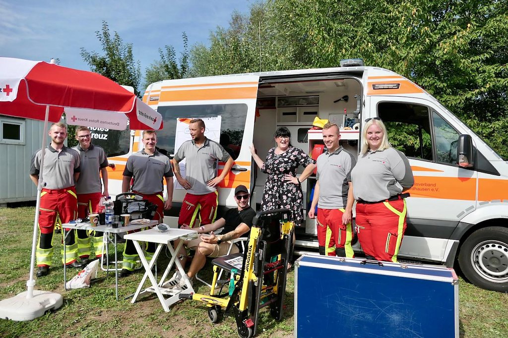 In herzlicher Atmosphäre bot das Fest eine Plattform für Austausch, Anerkennung und gemeinsames Feiern der vielfältigen Einsätze und Projekte des DRK. Unter dem Motto Gemeinsam stark kamen etwa ca. 200 Freiwillige und Angestellte und Ehemalige aus verschiedenen Bereichen des DRK zusammen, um zu feiern, Erfahrungen auszutauschen und sich untereinander besser kennenzulernen. Die Wasserwacht präsentierte ihr Boot für den Einsatz im Katastrophenschutz, Rettungsdienst und Sanitätszug waren mit Einsatzfahrzeugen vor Ort und als Gäste konnte die Rettungshundestaffel der "Teamdogs" begrüßt werden. In bester Stimmung war auch der DRK - Nachwuchs, unter anderem durch Hüpfburg und Kinderschminken. Die Vorstände Uwe Kramer und Doreen Apel begrüßten und dankten den Ehrenamtlichen für ihr herausragendes Engagement und betonten die Bedeutung ihrer Arbeit: Ohne die zahlreichen Ehrenamtlichen wäre unsere Arbeit nicht denkbar. Sie sind das Rückgrat unserer Organisation.