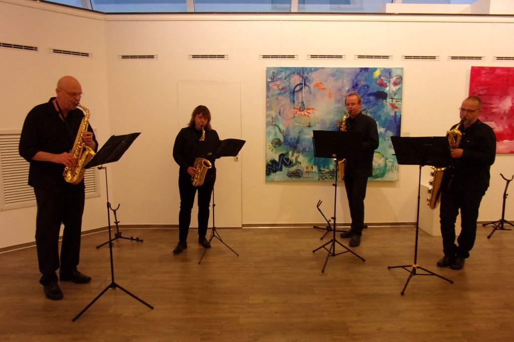 Die musikalische Einstimmung auf die aktuelle Ausstellung blieb diesmal dem Saxophon–Quartett der Kreismusikschule Nordhausen vorbehalten. Zu dem Ensemble gehören Regina Gehrmann, Friedemann Büttner, Dr. Dirk Ludewig und Volker Prauße.