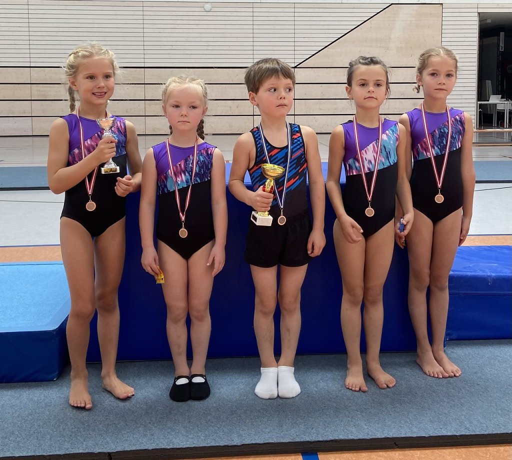 Am Ende konnte sie sich über einen tollen 5. Platz freuen. Auch in der Altersklasse 7 konnten sich Kate Krömer und Theodor Strietzel souverän behaupten und erturnten sich einen 3.Platz bzw. 2. Platz. Käthe Krüger in ihrer Wettkampfklasse (AK 8) zeigte durchweg gute Übungen und belegt bei ihren ersten großen Wettkampf einen 5. Platz.
