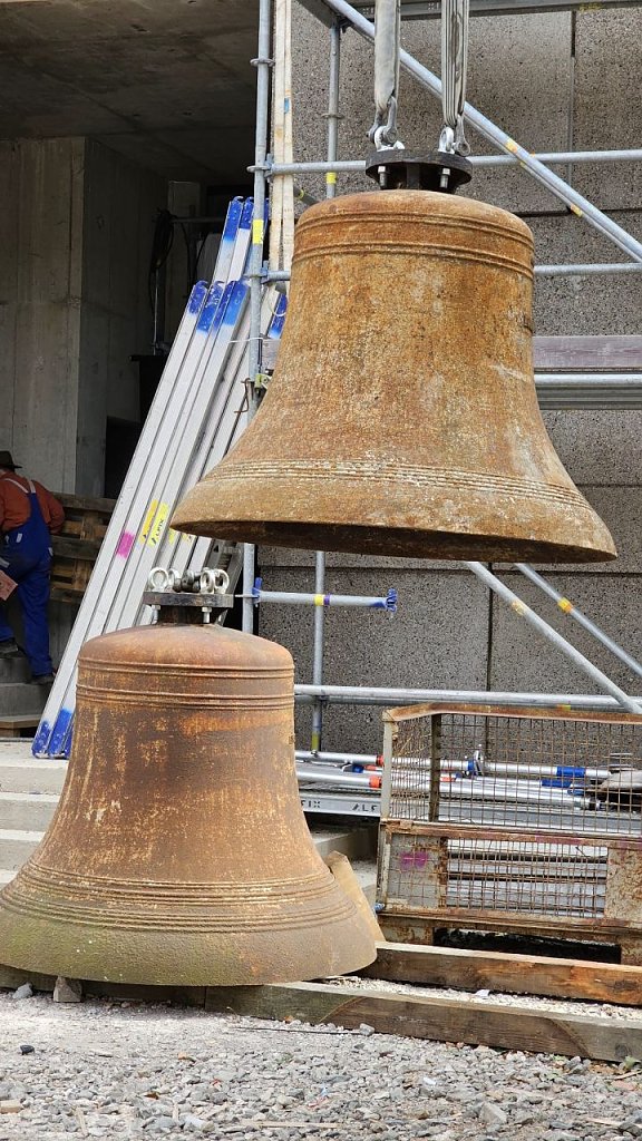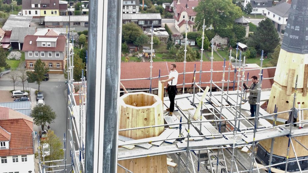 In den Morgenstunden bot sich Ellrich ein besonderes Spektakel - die neuen Türme der Johanniskirche erhielten ihre Spitze und auch ihre Glocken...