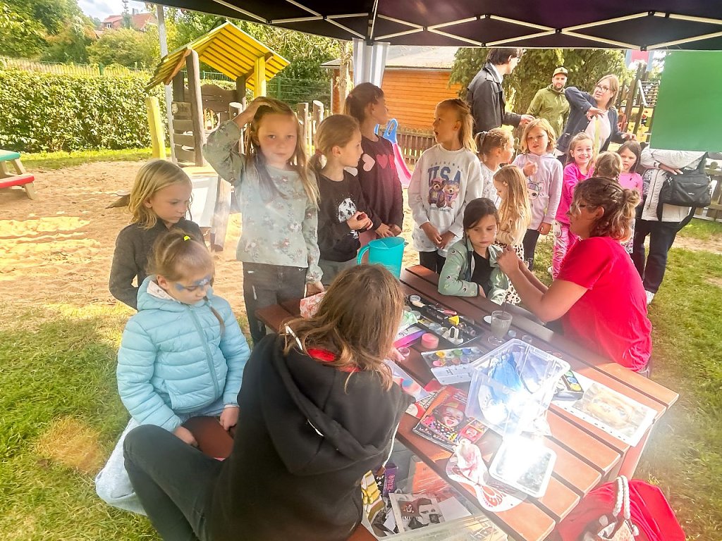 Auf die Kinder wartete ein abwechslungsreiches Programm: eine Kistenrutsche, eine Hüpfburg, ein Karussell und viele Mitmachstände sorgten für Spaß und strahlende Gesichter. Auch die Polizei, die Freiwillige Feuerwehr Niedersachswerfen und der Rettungsdienst waren vor Ort. Die Kinder hatten die Möglichkeit, die Einsatzfahrzeuge hautnah zu erleben und einen Blick hinter die Kulissen zu werfen.